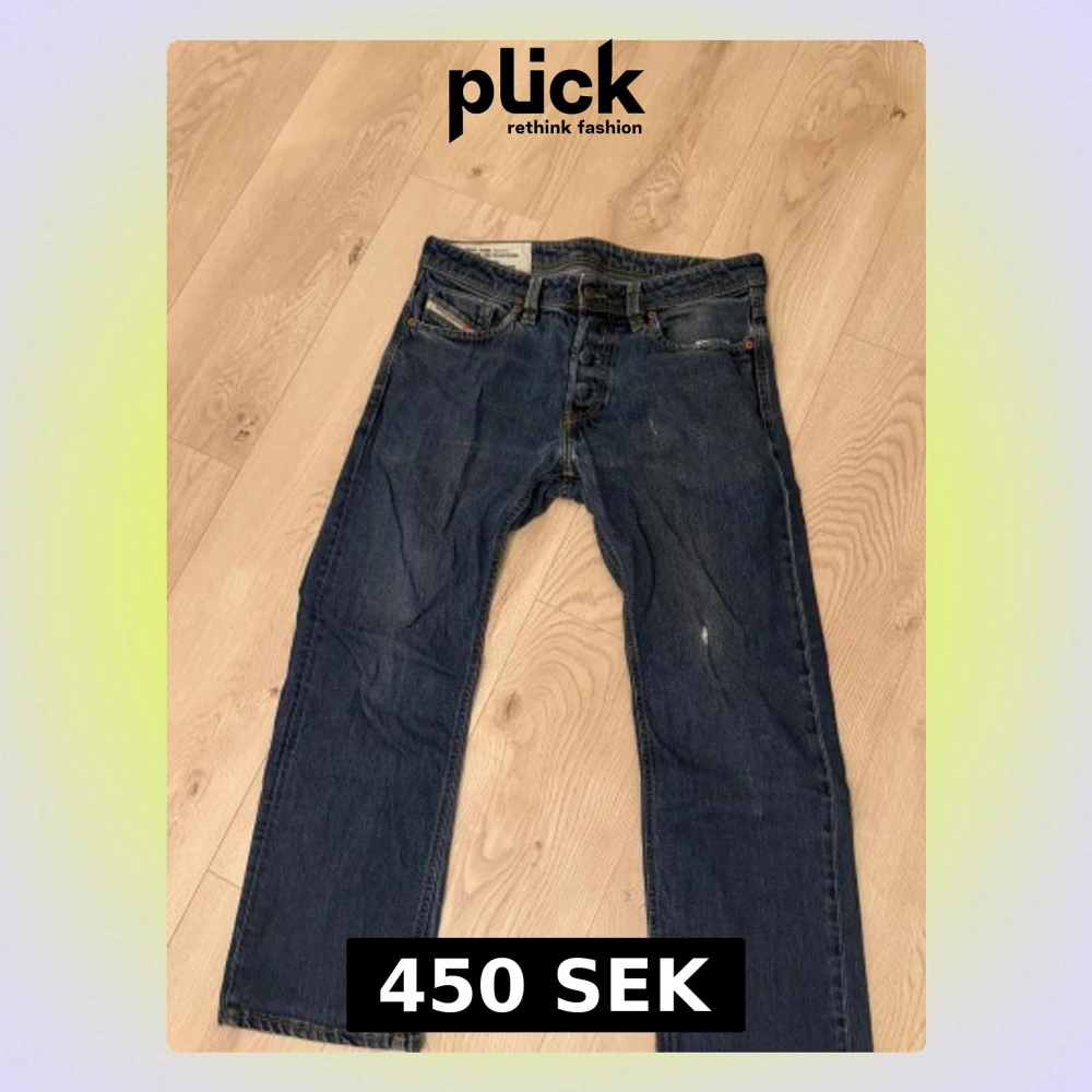 Säljer ett par klassiska blå jeans från Diesel i storlek 31. Jeansen har rak passform, fem fickor och snygga detaljer med Diesel-logga på bakfickan. Tillverkade i 100% denim med italiensk design. Perfekt för dig som gillar tidlös stil.