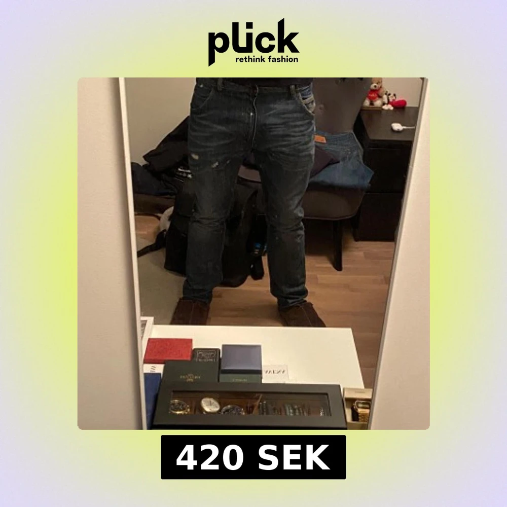 Säljer ett par Diesel jeans i mörkblå tvätt med slitningar och snygga detaljer. Modellen har tapered passform, klassiska fem fickor och kontrastsömmar på bakfickorna. Hör av dig vid minsta fundering
