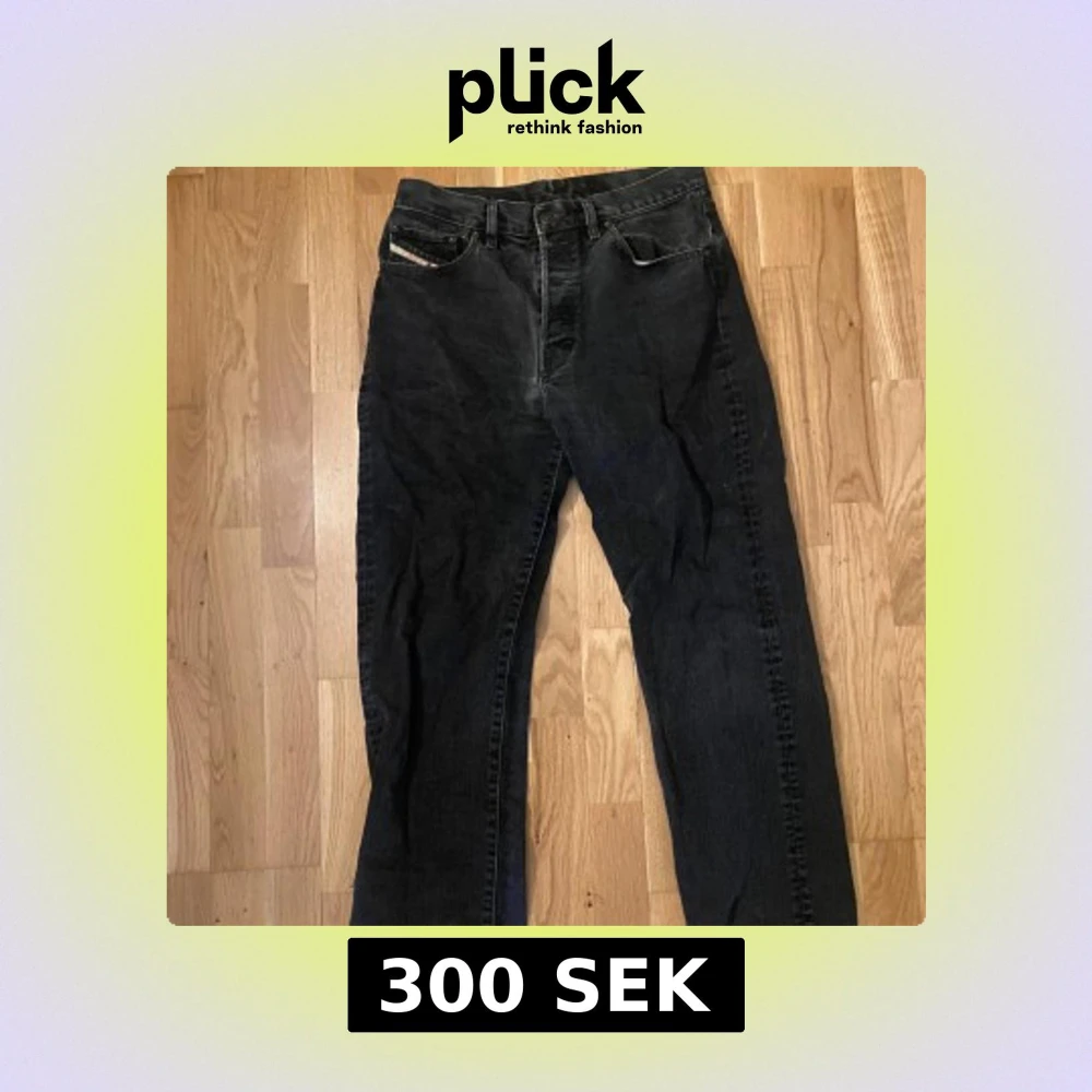 Jeans i urtvättat svart från Diesel i klassisk straight/regular fit. Minns inte vilken modell men sitter liknande de på bilden. De är mycket sköna men var lite för baggy för min smak. Nypris 1800kr
