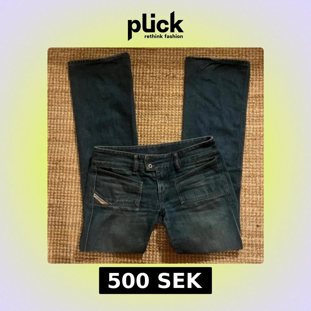 Lånade bilder! Snygga lågmidjade bootcut jeans från Diesel. Är i bra skick. Passar i längden på mig som är 163, skulle säga att de passar i längd upp till 165/166 cm .