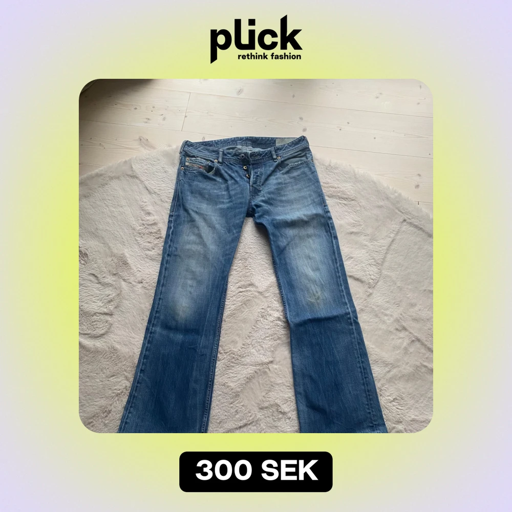 Säljer dessa jättefina blåa jeansen med sån fin detalj på bakfickan! Så snygga nu på vinter och har en perfekt bootcut!