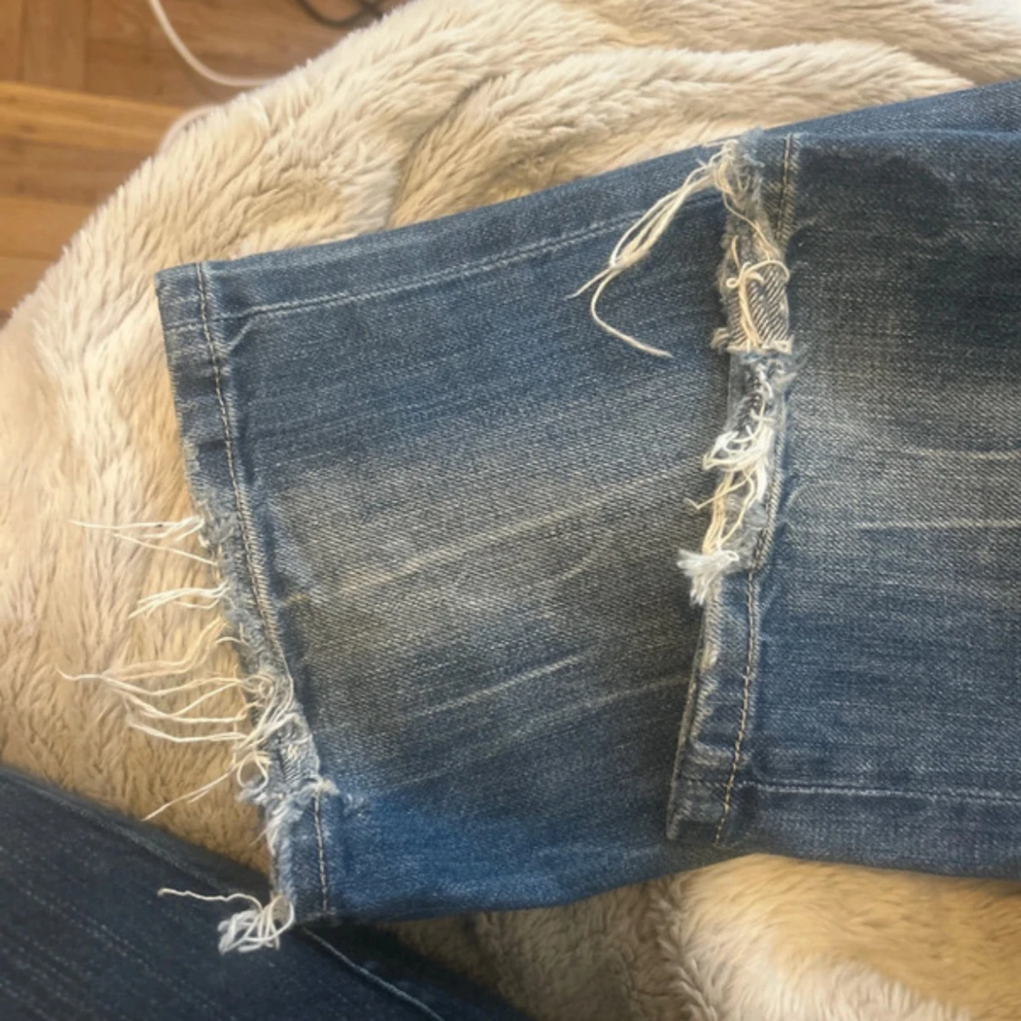 Super snygga med inga defekter förutom lite slitningar som visas i sista bilden. Står storlek 28/32
