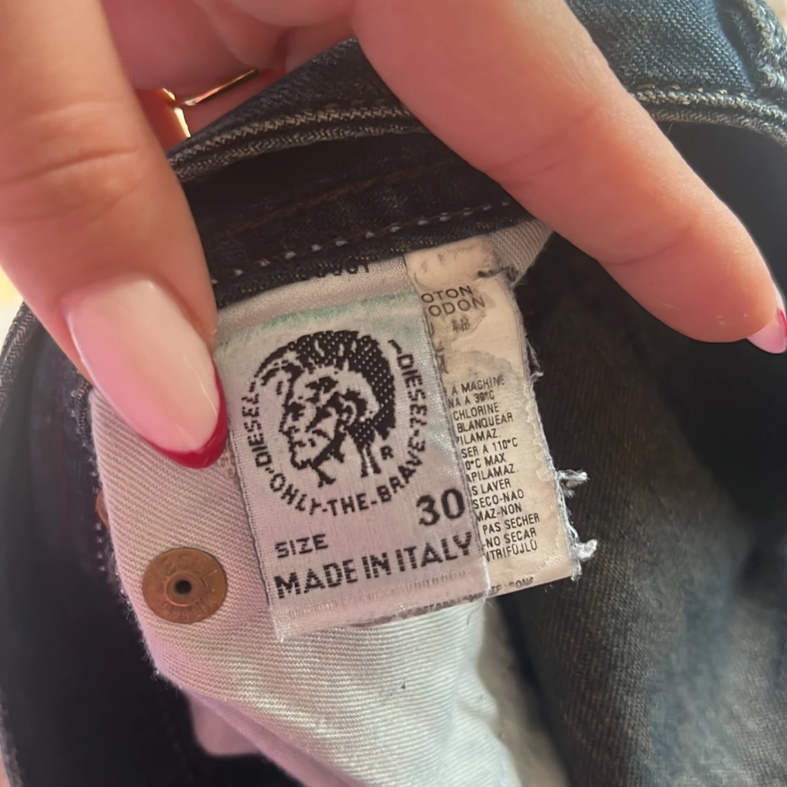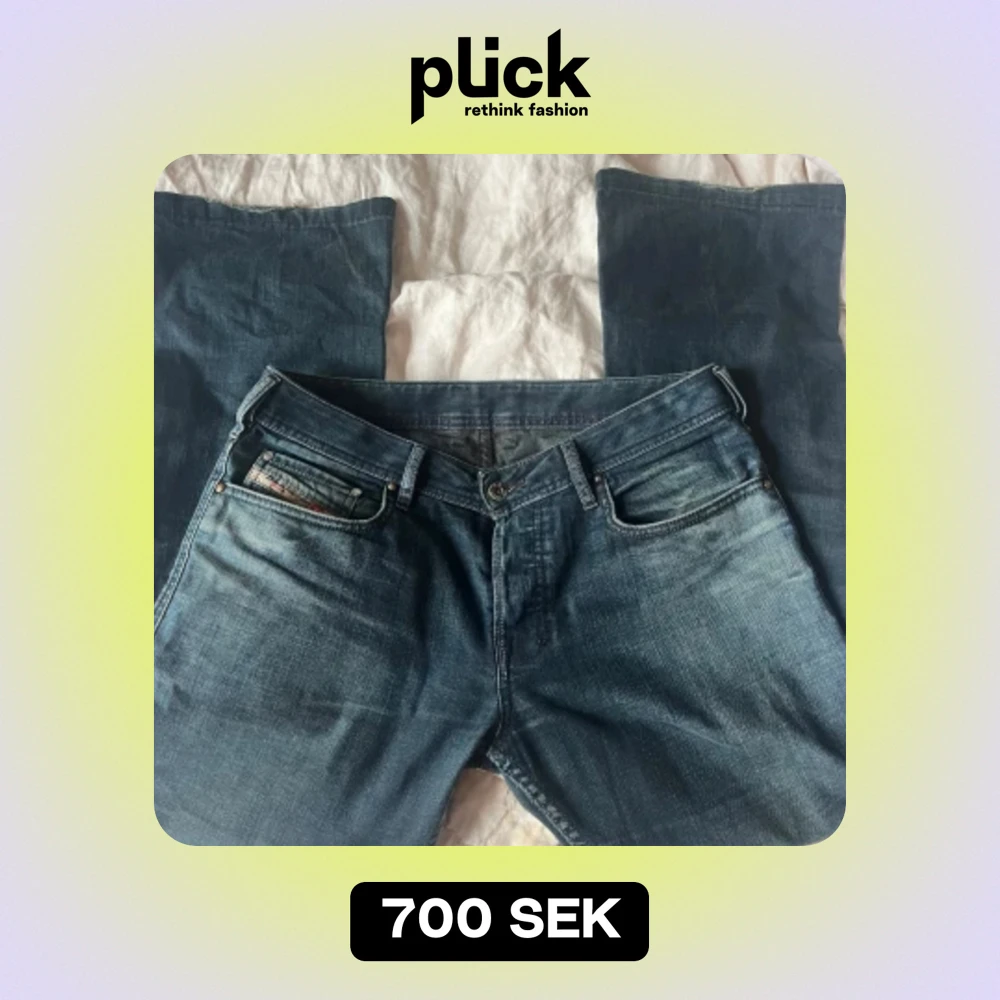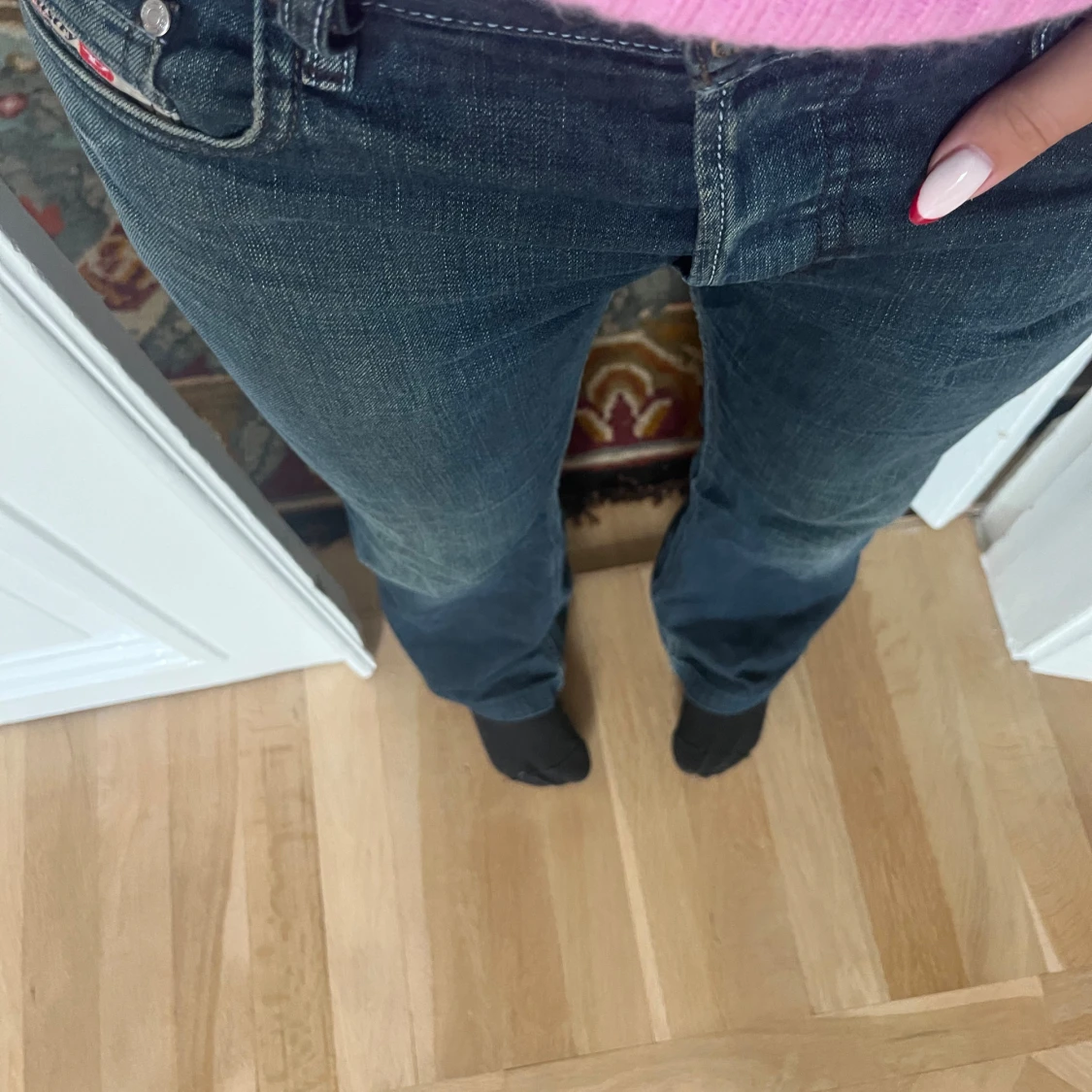 Super snygga Diesel jeans, kommer inte till användning, Lite upp”rivet” längst ner på byx benet, annars inga andra difekter, bootcut och lågmidjade! Jag är en S och dem sitter bra, lite långa jag är 165.