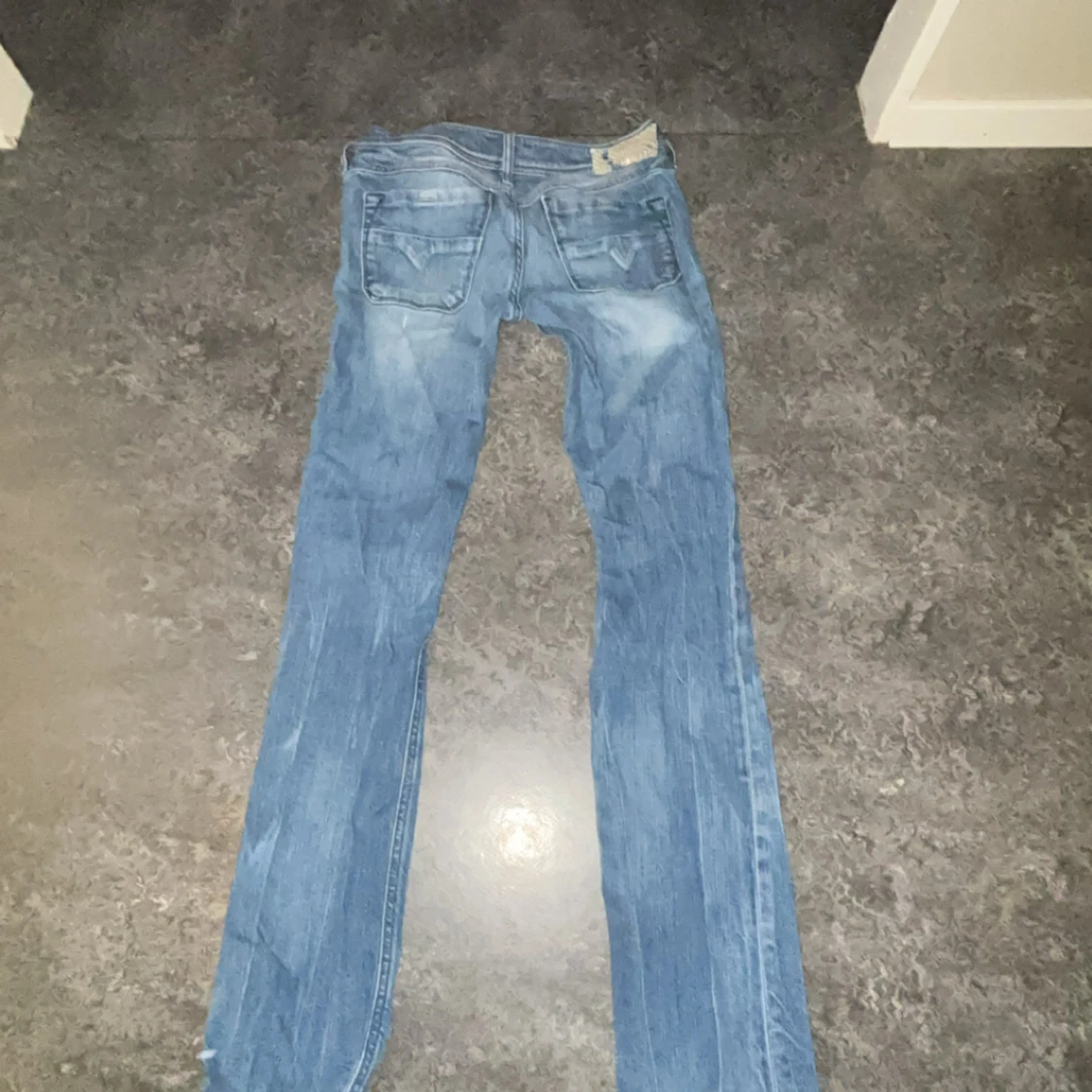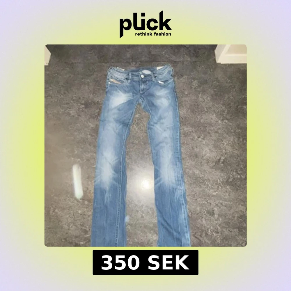 Säljer ett par diesel jeans i ljusblå tvätt med snygga slitningar. Modellen har smal passform och klassisk femficksdesign. Jeansen är tillverkade i mjukt bomullsmaterial och har låg midja. Perfekta för dig som gillar en modern och avslappnad stil. Köpt tidigare på vinted men inte använd av mig då dom var för småa💕W=27, L=34. Kom med förslag på priset❤️ Skriv om ni vill ha fler bilder