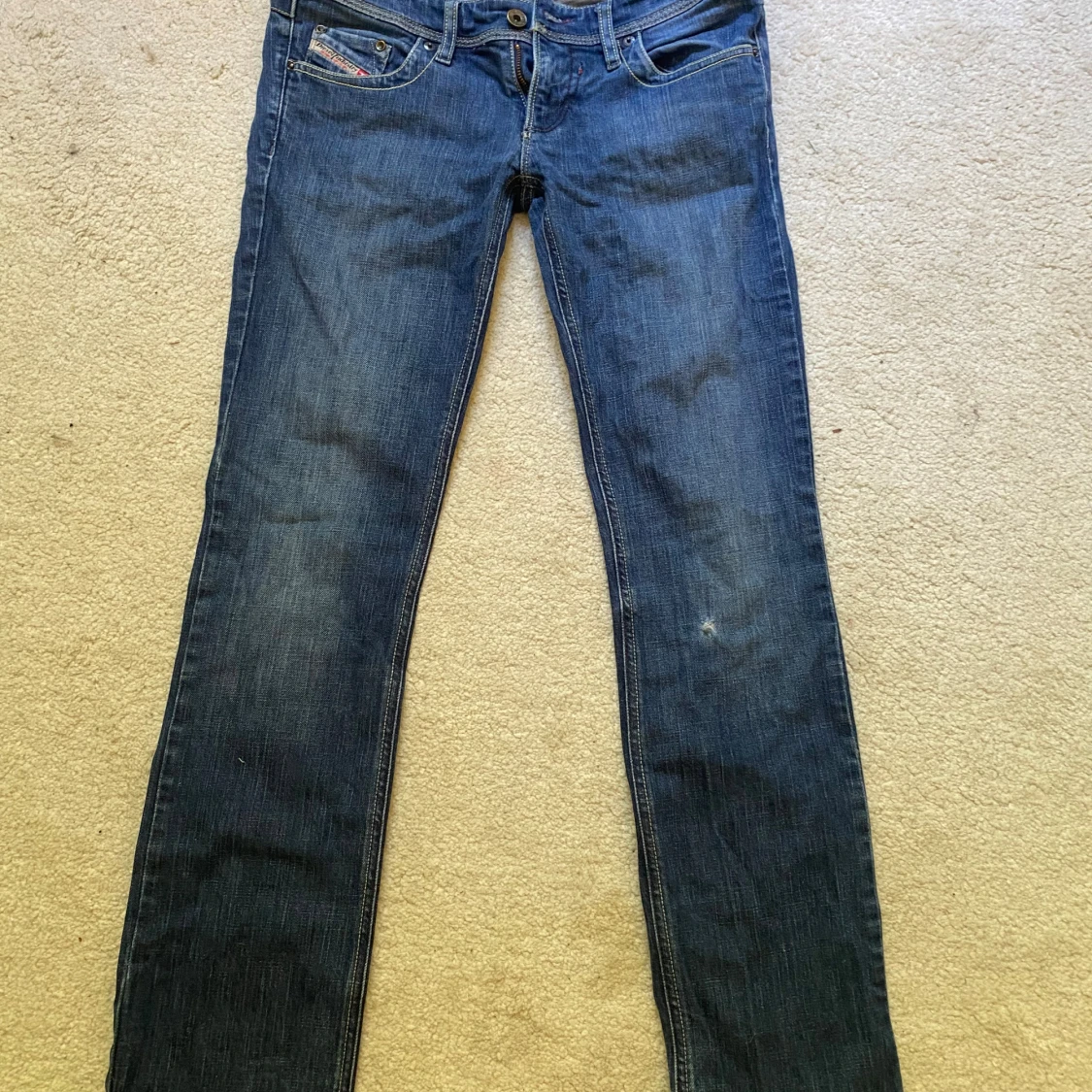 Snygga blåa bootcut jeans feån Diesel. De är lågmidjade och har jätte snygga bakfickor💕