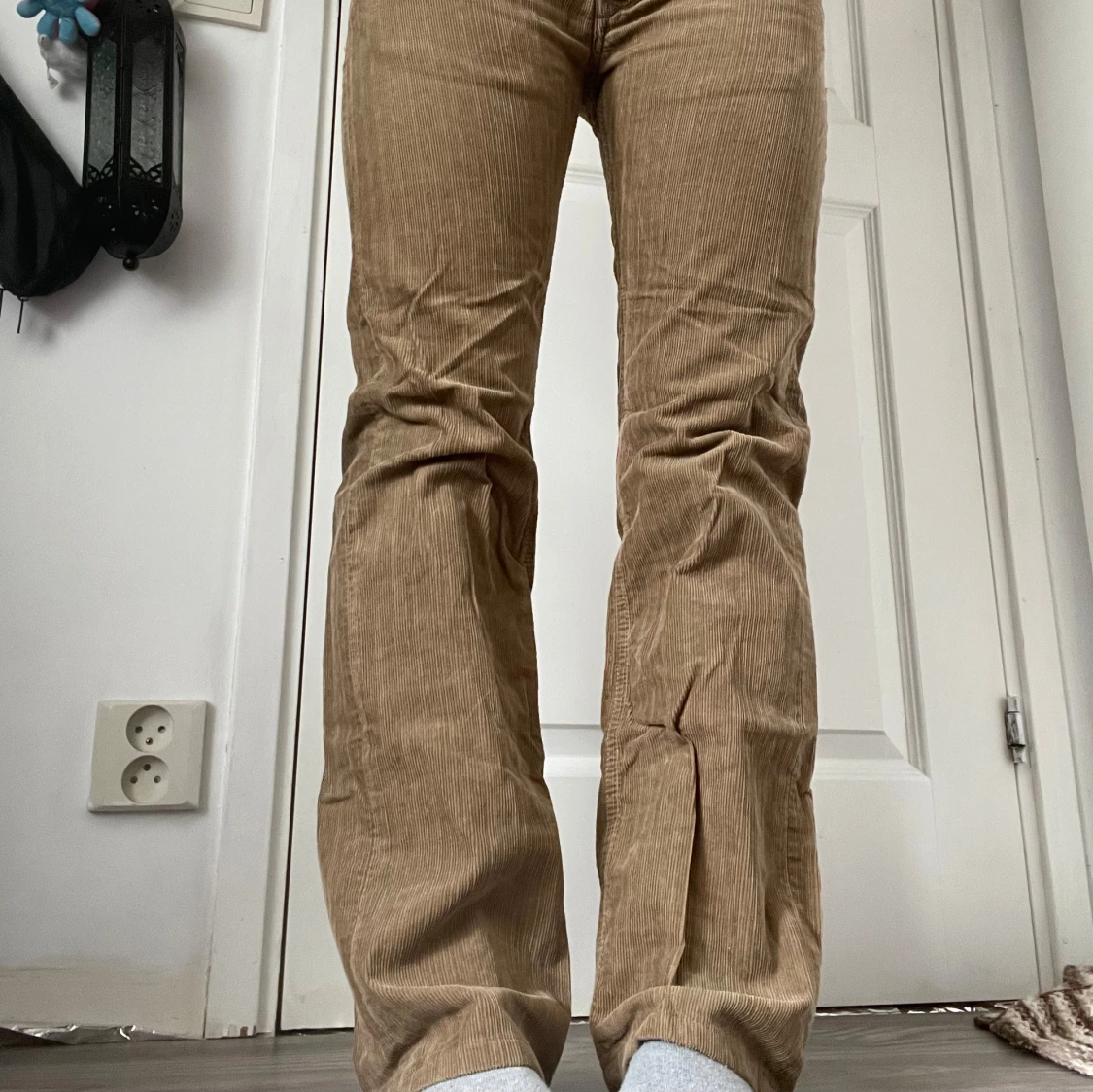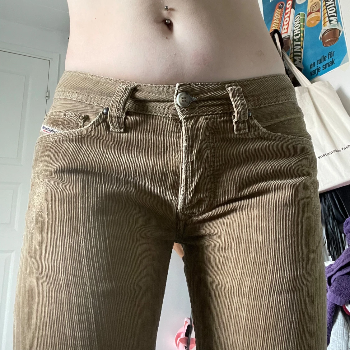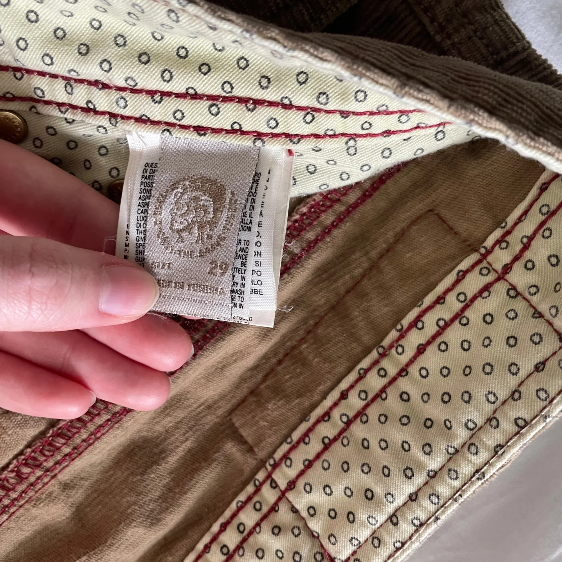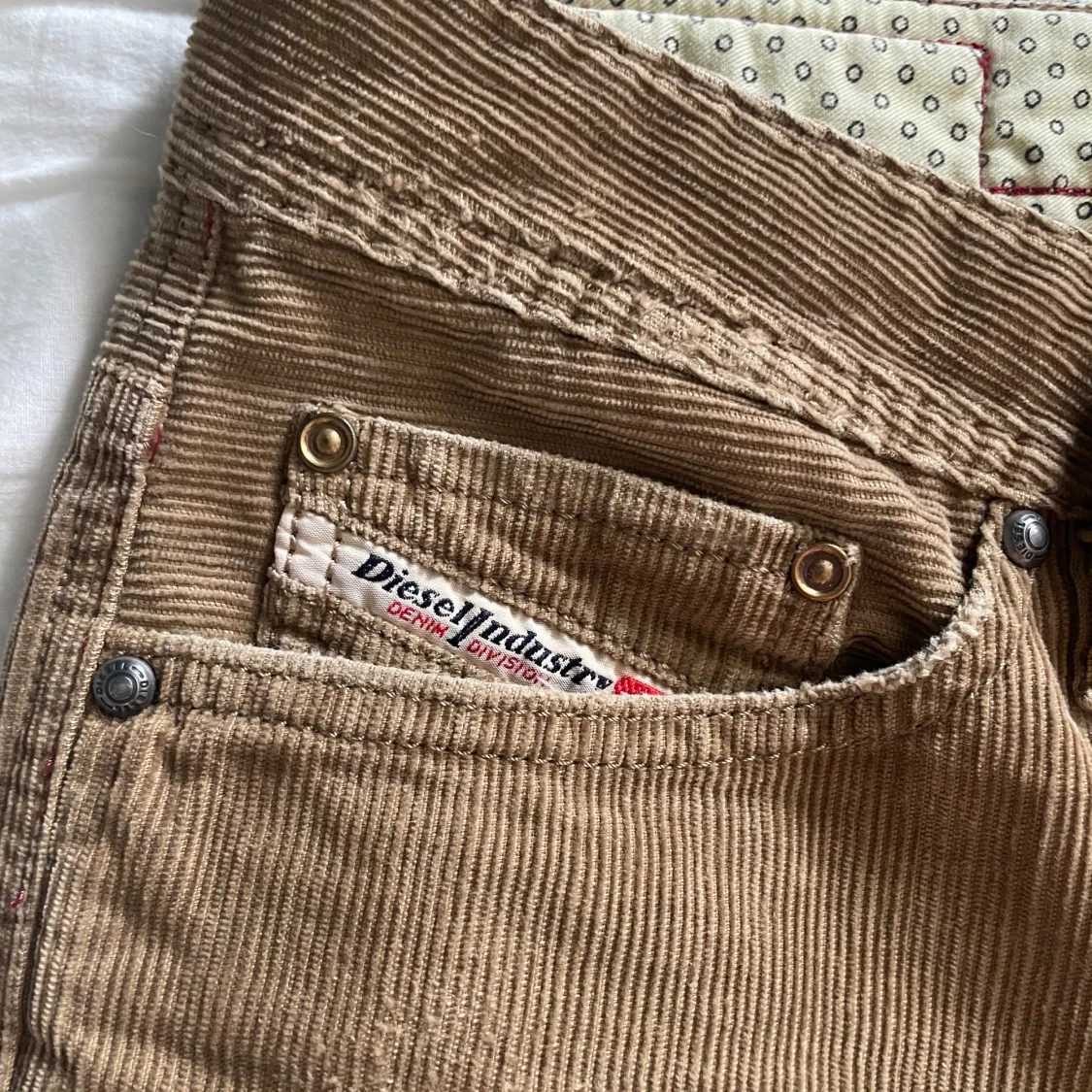 Snygga beige manchesterbyxor från Diesel industry med en unik broderad detalj på baksidan. Byxorna har en klassisk femficksdesign och är perfekta för en avslappnad stil.