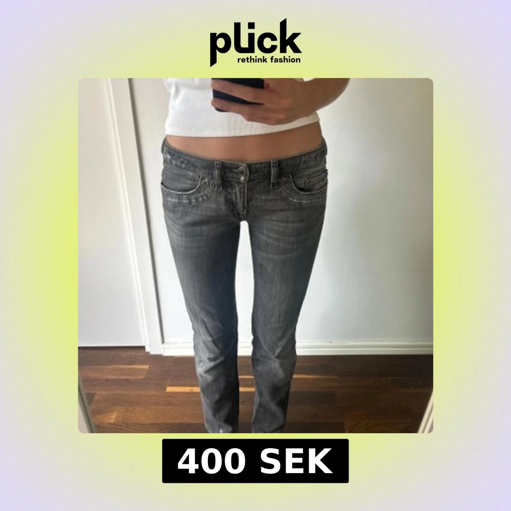 Grå lågmidjade jeans ifrån Diesel. Köpa här på Plick, endast använda någon gång av mig. I bra skick. Jag är 175 cm för referens.