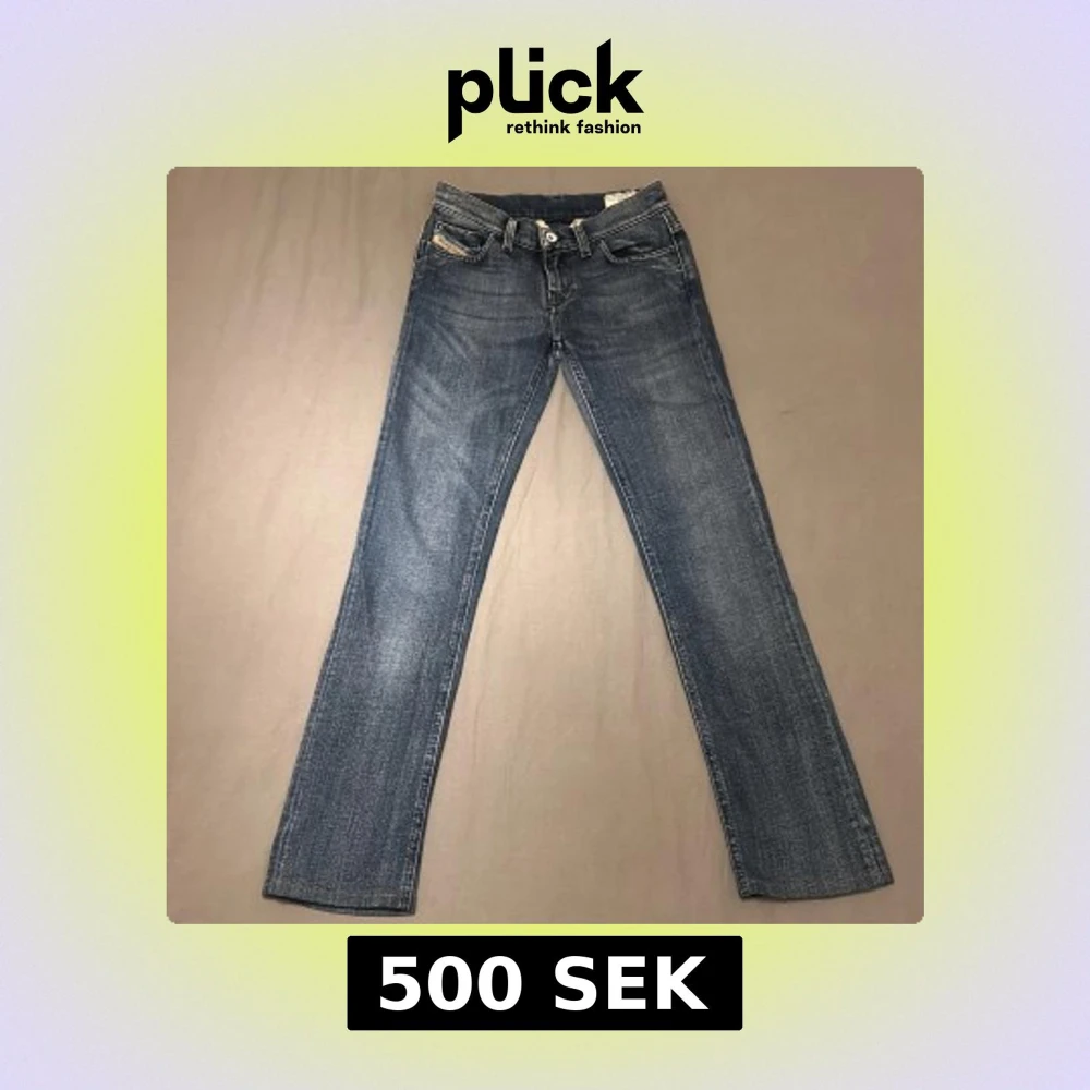 Jättesnygga vintage diesel jeans i en klassisk blå denim med ljusa slitningar/faded look. Low waist-modell, sitter snyggt och passar mig perfekt i längden (jag är 163 cm).