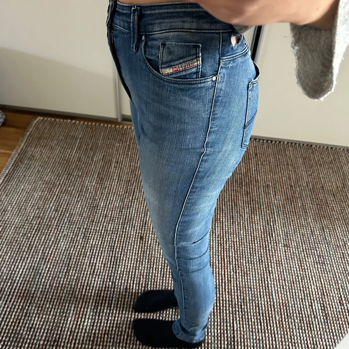 Fina Skinny jeans från diesel de har två hål pågrund av att man har dragit upp byxorna går att laga