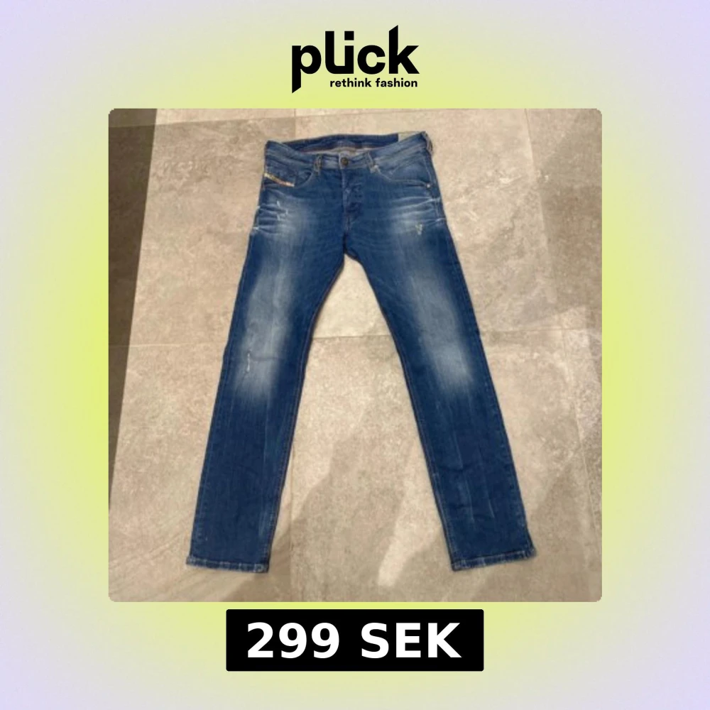 Snygga blå jeans från Diesel, modell Belther. Jeansen har en slim-tapered passform med klassisk femficksdesign och subtila slitningar framtill. Stretchmaterial för extra komfort och snygg faded effekt på benen. Perfekt för dig som gillar en modern och avslappnad stil. Storlek 30-30
