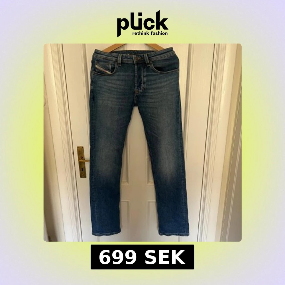 Säljer ett par klassiska blå jeans från Diesel, modell Larkee. Jeansen har raka ben, normal passform och snygga detaljer på bakfickorna. Perfekta för dig som gillar en tidlös stil. Endast använda ett fåtal gånger så är i superskick! Mitt pris 699kr, nypris 1500kr. Det är bara att skriva om du har frågor eller fler bilder!😎😊