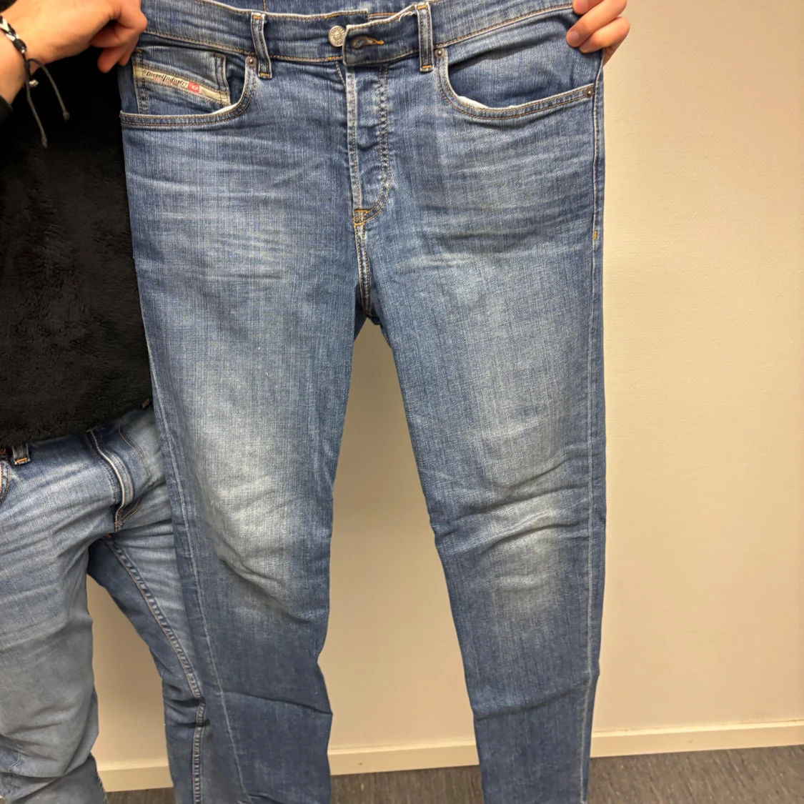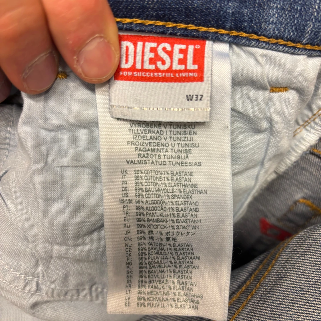 Snygga blå jeans från Diesel med klassisk femficksdesign och knappgylf. Jeansen har en modern passform och är tillverkade i en bomullsblandning för extra komfort. Perfekta för en avslappnad stil.