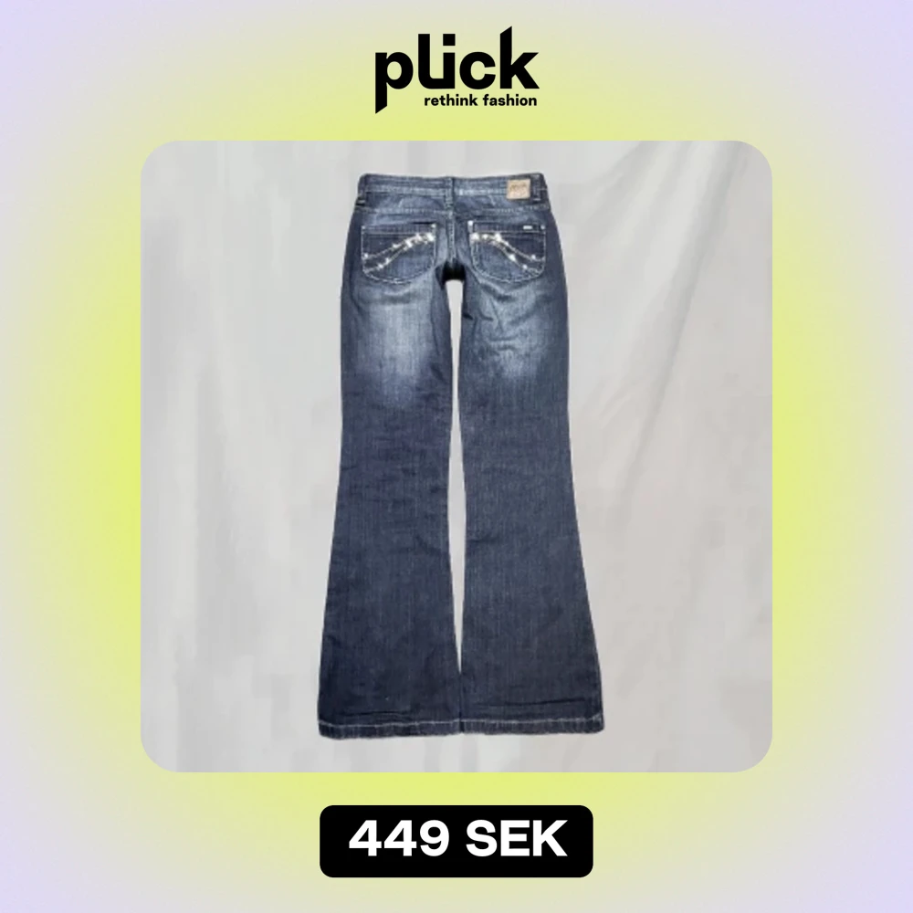 Midja:ca71 innerben:80 Jeans vintage från diesel. Stenar på bakfickorna. Bootcutmodell. Storlek EU 32, passar en XS Några få stenar saknas. Ytterst smånötta enligt sista bild. Överlag mycket fint skick!!🤍