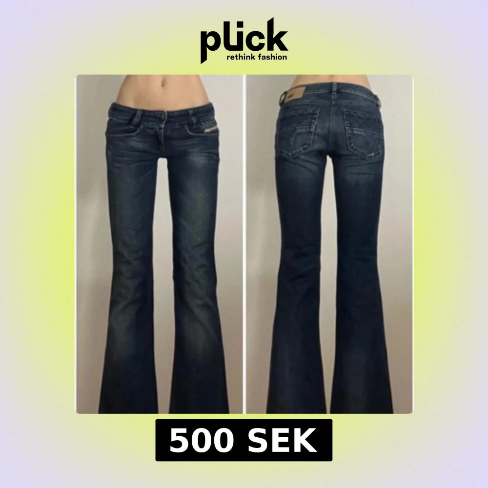 Snygga blå bootcut jeans från Diesel med klassisk femficksdesign och låg midja. Jeansen har en lätt slitning för en trendig look och en logotyp på bakfickan. Perfekta för en avslappnad stil. Storleken står på bild i W och L💕💕 midjemåttet: 37cm. Innerbenslängden: 70cm. Bredd längste ner: 22cm. Höjd av midja: 19cm💕💕 De är pytte lite slitet under dragkedjan (ett litet hål) men man ser inte de!💕💕