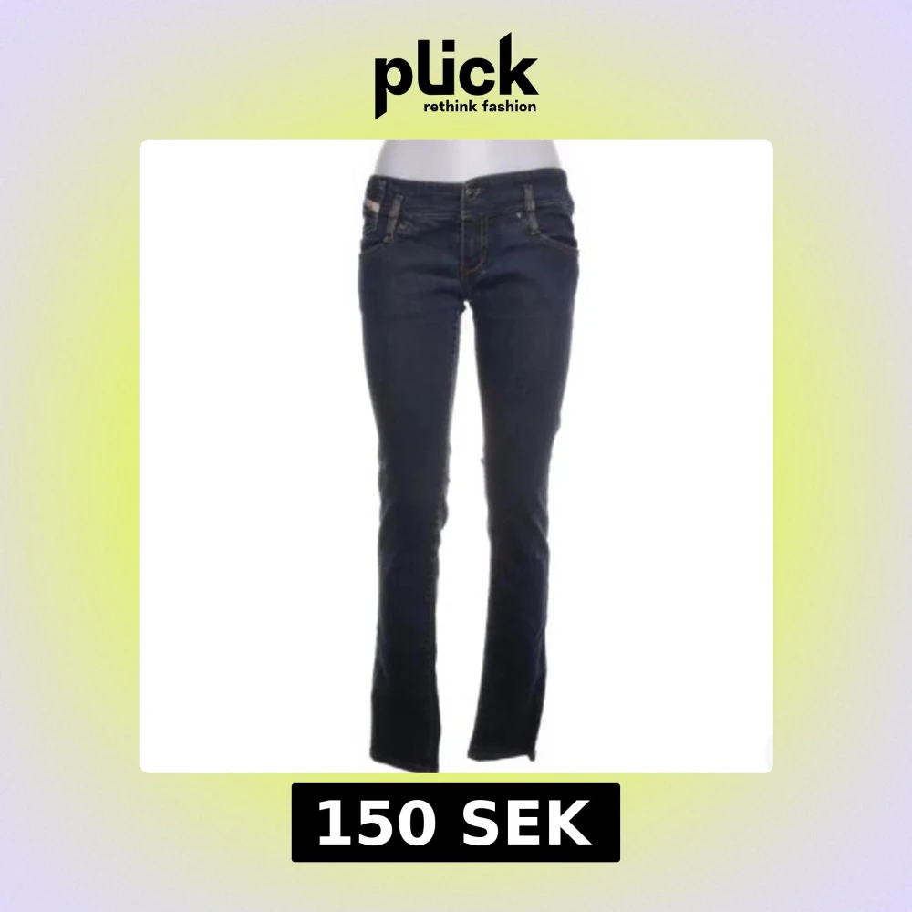 Snygga mörkblå jeans från Diesel med låg midja och smal passform. De har klassiska femficksdetaljer och kontrastsömmar. Perfekta för en stilren look.