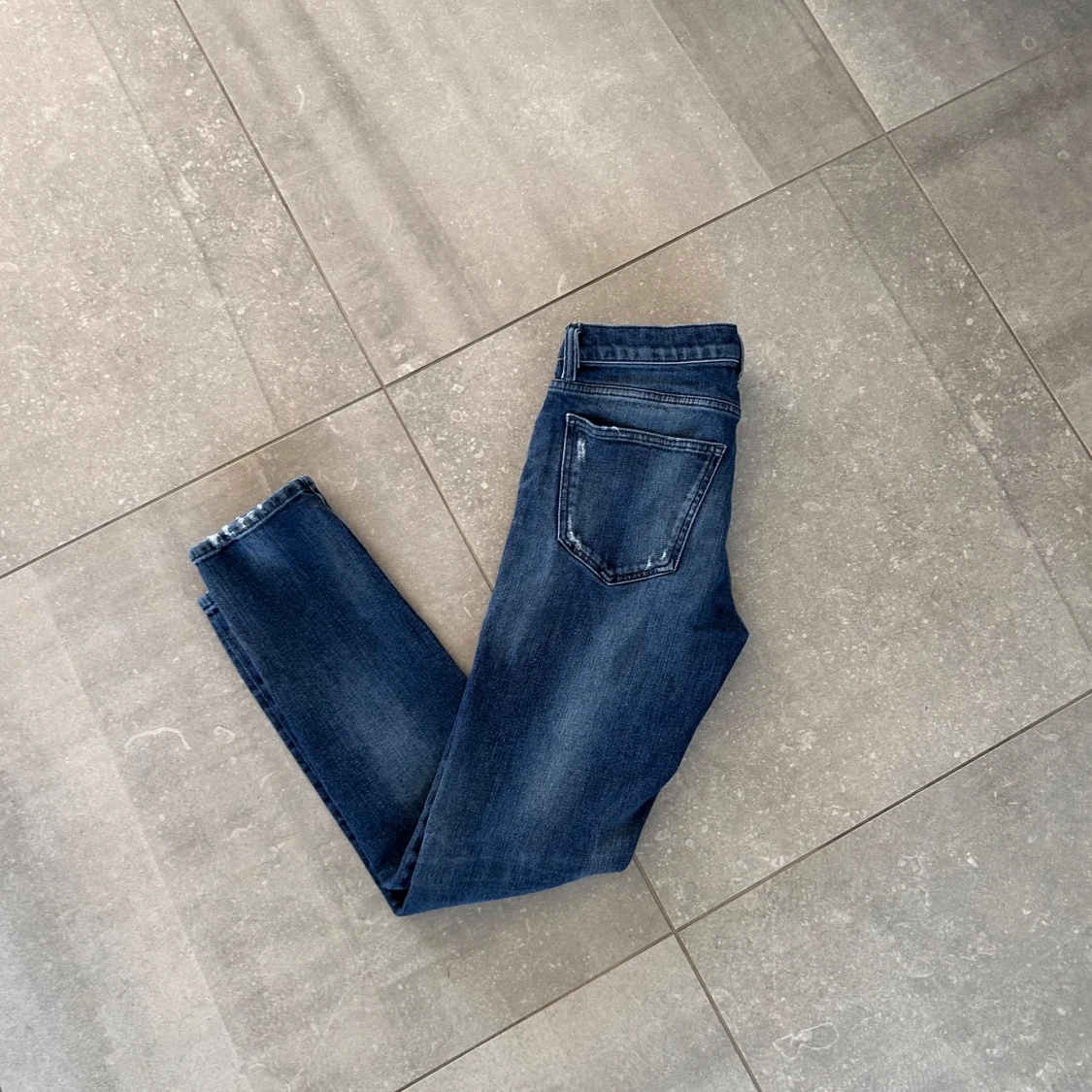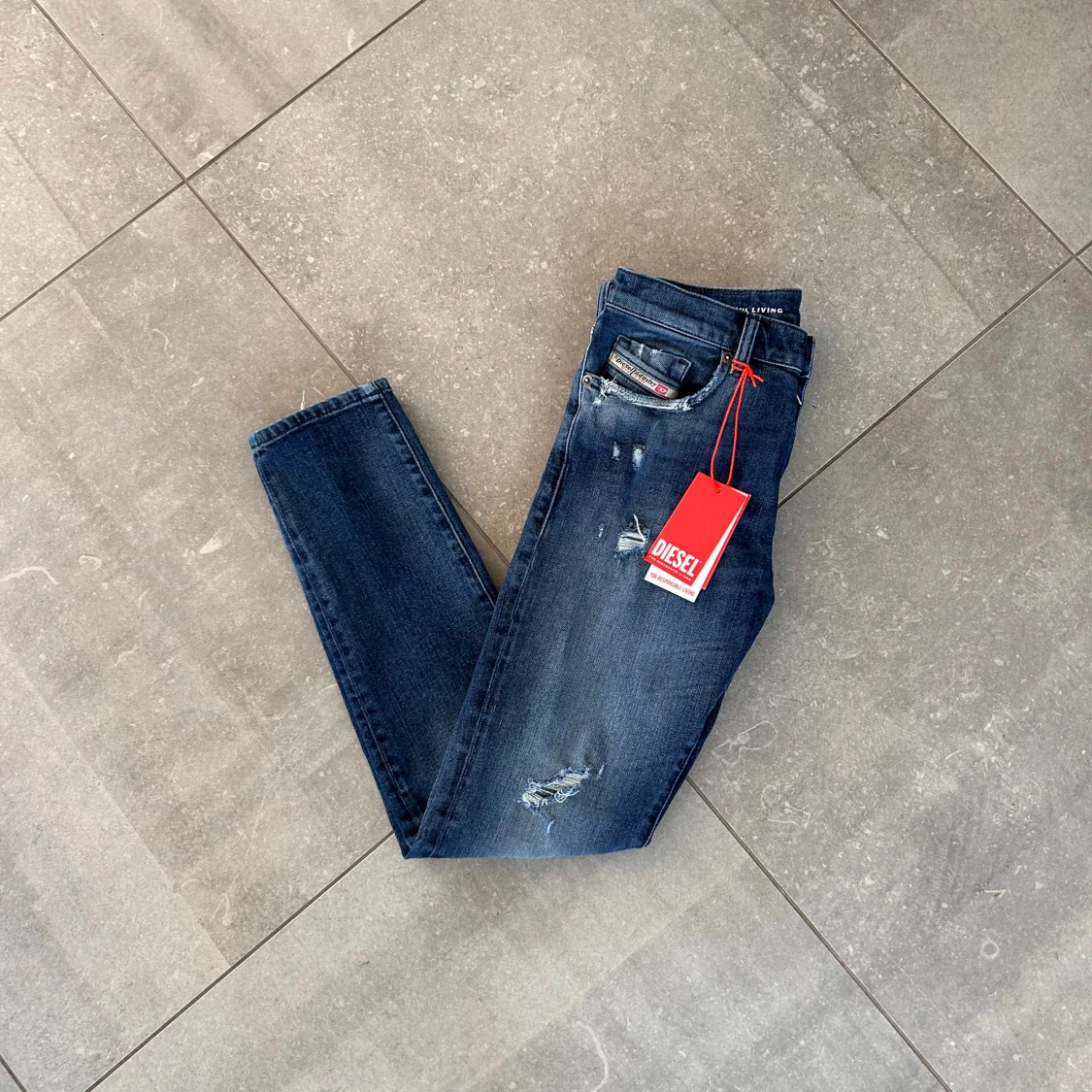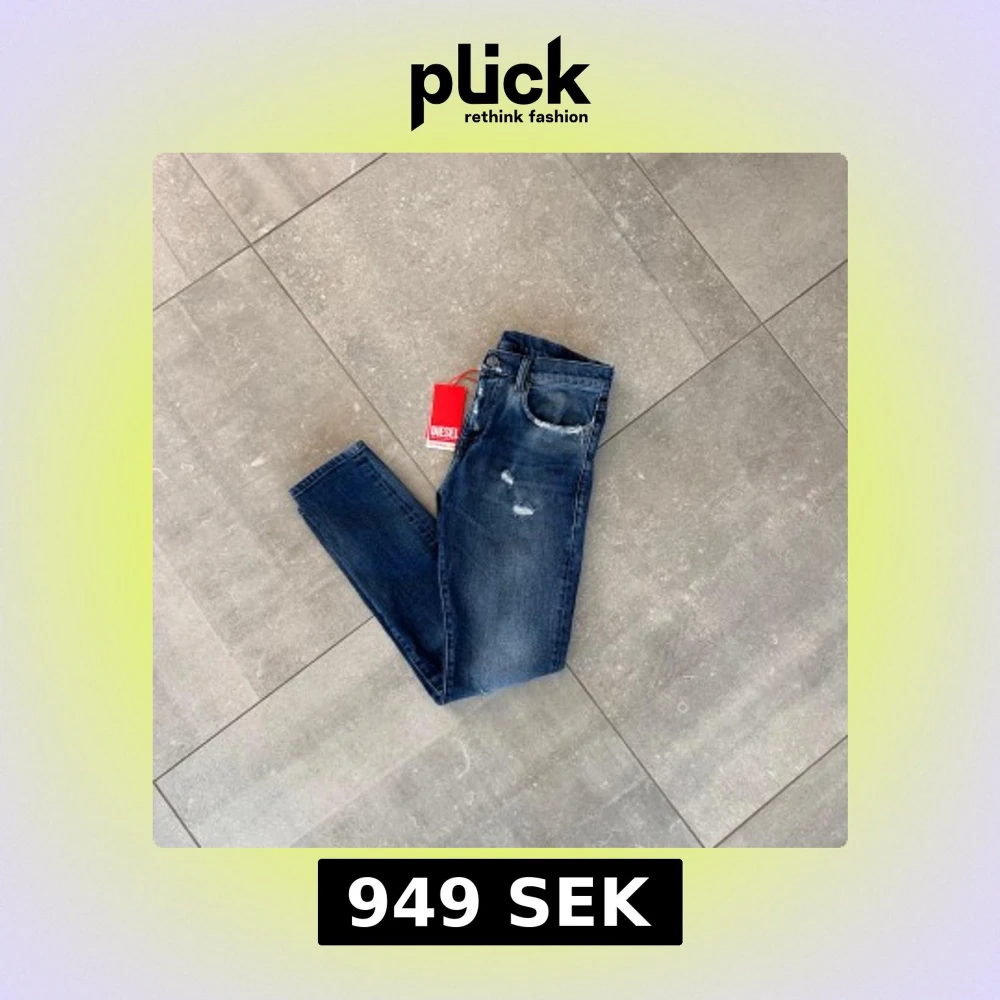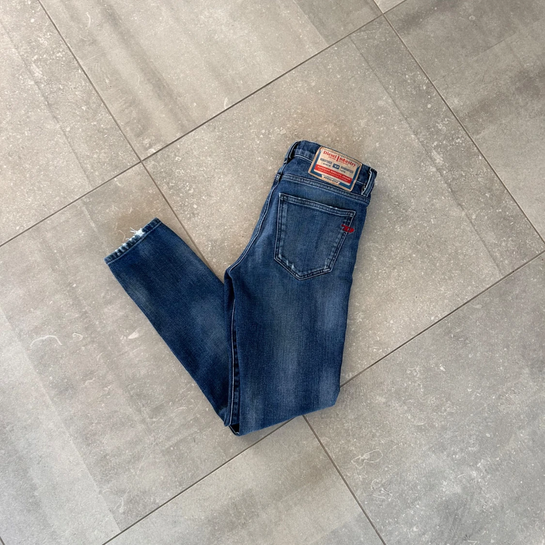 Snygga blå jeans från Diesel med en klassisk femficksdesign. De har en lätt slitning på framsidan för en trendig look. Nyskick på jeansen och alla tags kvar. Stolek: W29 Nypris:1999kr