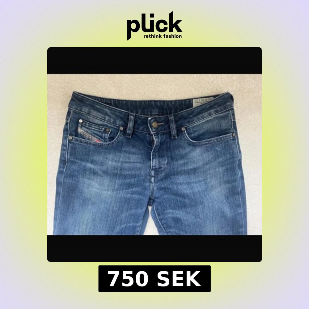 Snygga blå lowaist bootcut jeans från diesel med slitningar på låren och knäna. De har en klassisk femficksdesign och en knappgylf. Perfekta för en avslappnad stil. W30 L32. Pris kan diskuteras