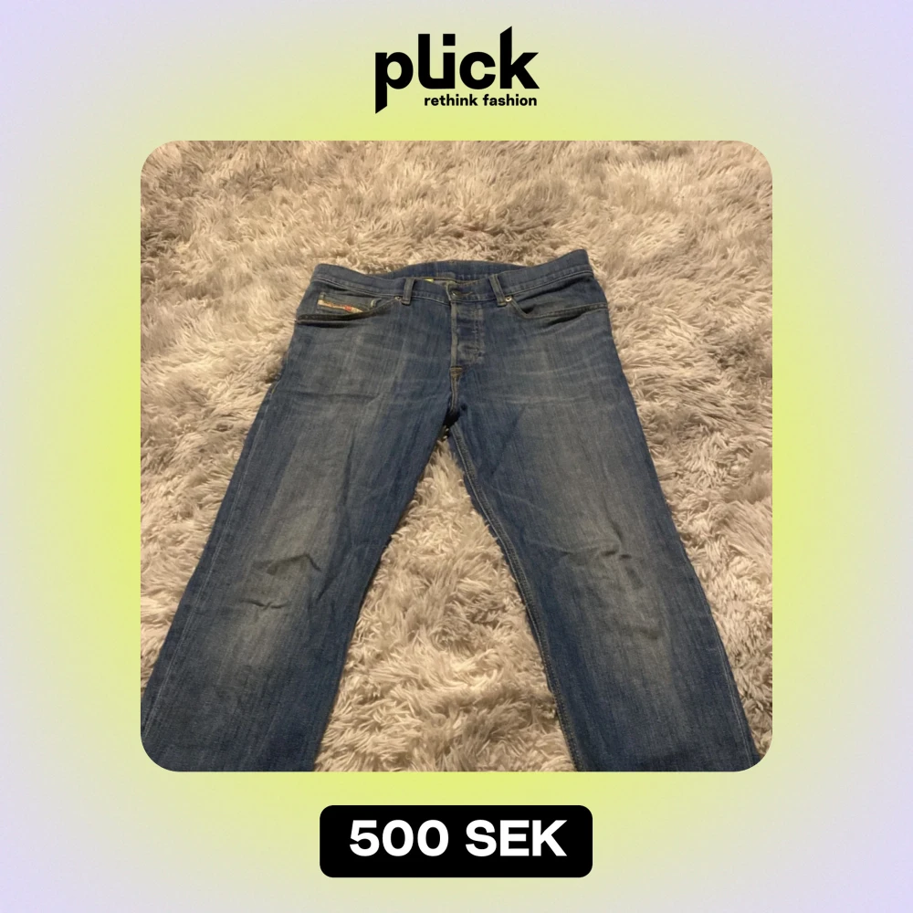 Säljer ett par snygga blå jeans från Diesel i väldigt bra skick. Då ja använt dom en gång.De har en lite washed effekt.De har en klassisk femficksdesign och en bekväm passform. Perfekta för både vardag och fest! 🕺