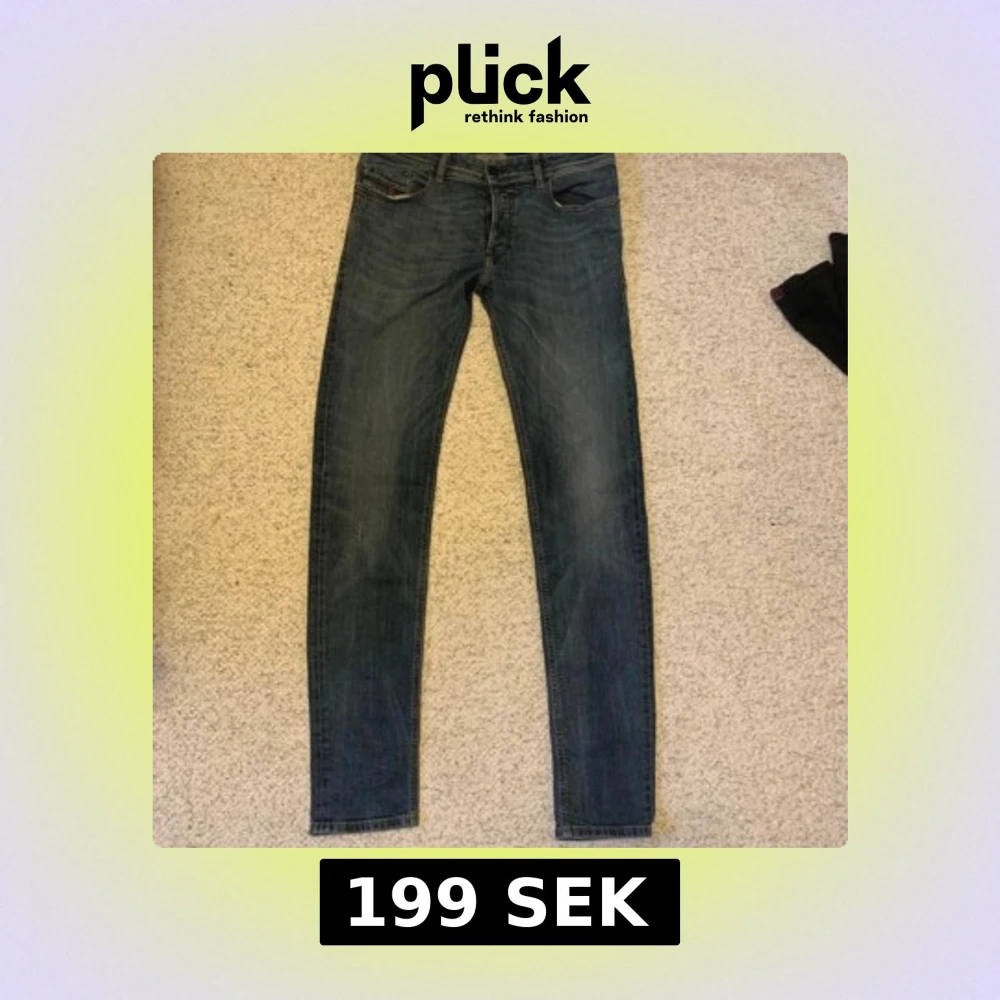 Slim-skinny jeans från Diesel, modell Sleenker, i klassisk blå tvätt med lätt slitning. Jeansen har fem fickor, stretchigt material och smal passform hela vägen ner. Perfekta för dig som gillar en tajt look och vill ha bekväma jeans med snygg finish. Super skick och en väldigt bra steal!