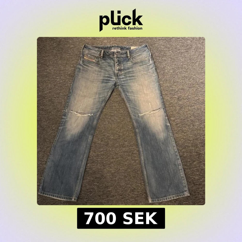 Snygga blå jeans med slitna detaljer på knäna. Dem är lite bootcut med riktigt snygg passform. Storlek 32/32.