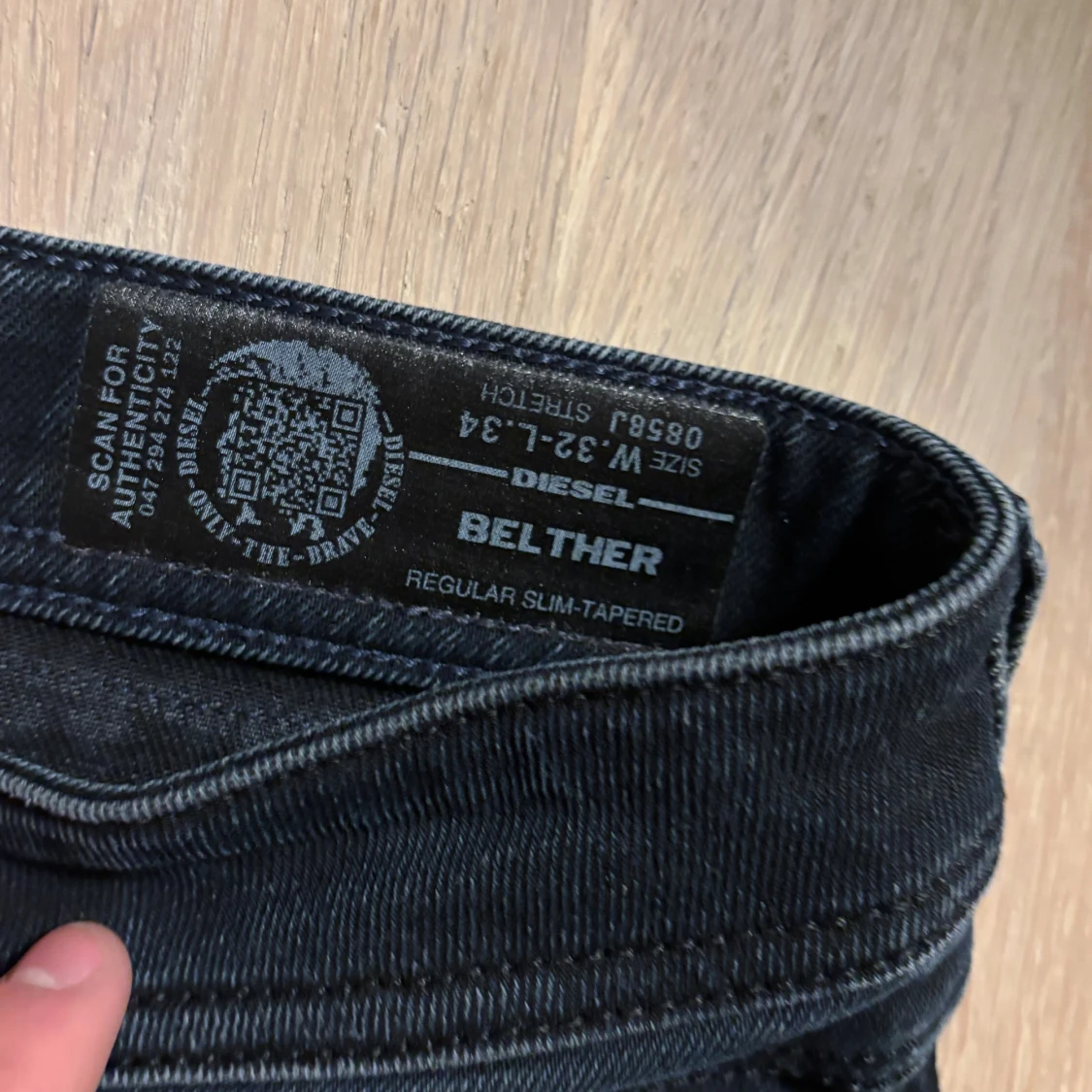 Svarta jeans från Diesel, modell Belther, med regular slim-tapered passform. Klassisk femficksdesign och diskreta slitningar. Jeansen är tillverkade i stretchigt denim för extra komfort och har en stilren look som funkar till det mesta.