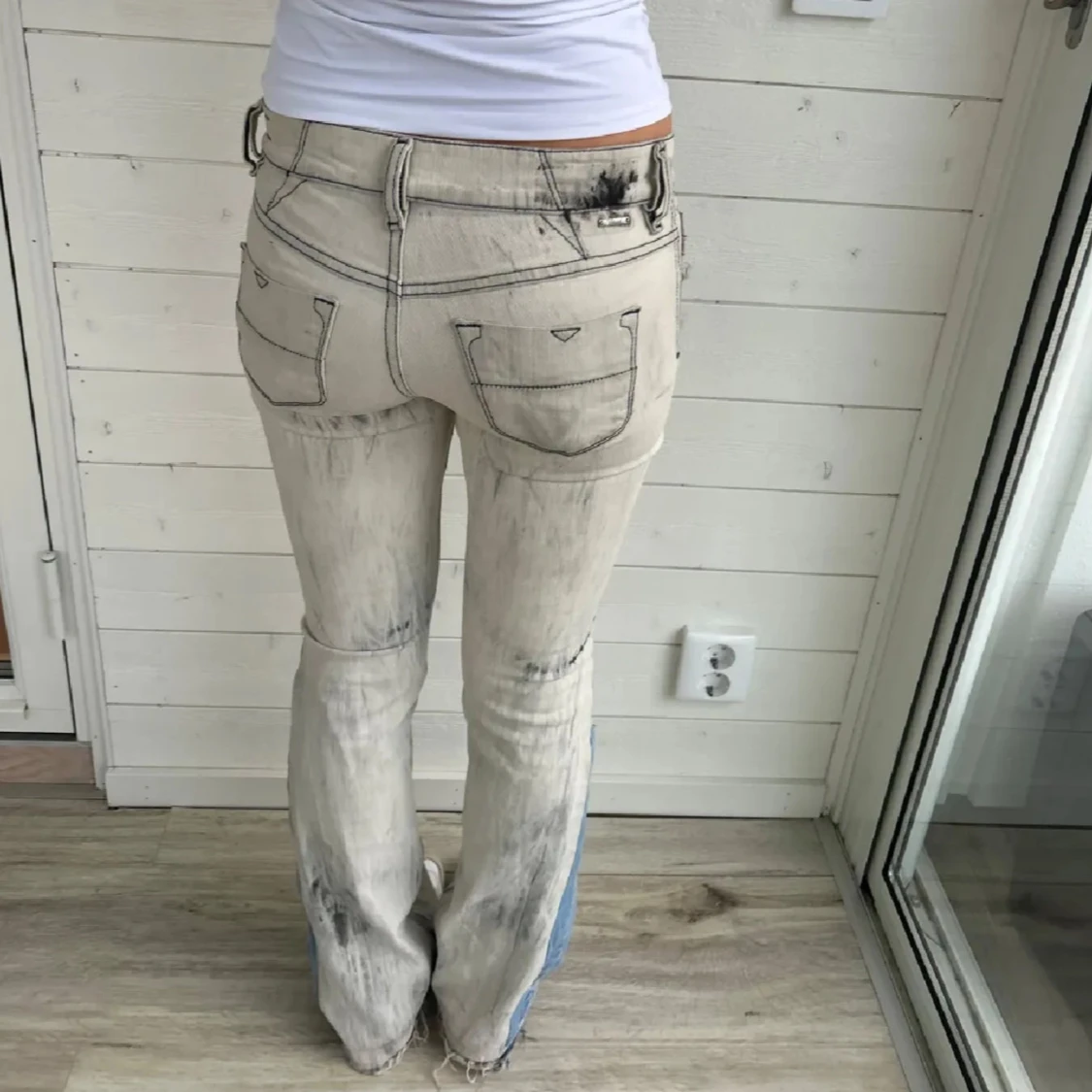 Snygga vit/gråa jeans. Midjemått:37x2 Innerbenslängd:78 ,pris går att diskutera. Lånade bilder från förra ägaren. Aldrig själv använt dem säljer vidare pga att de va för långa