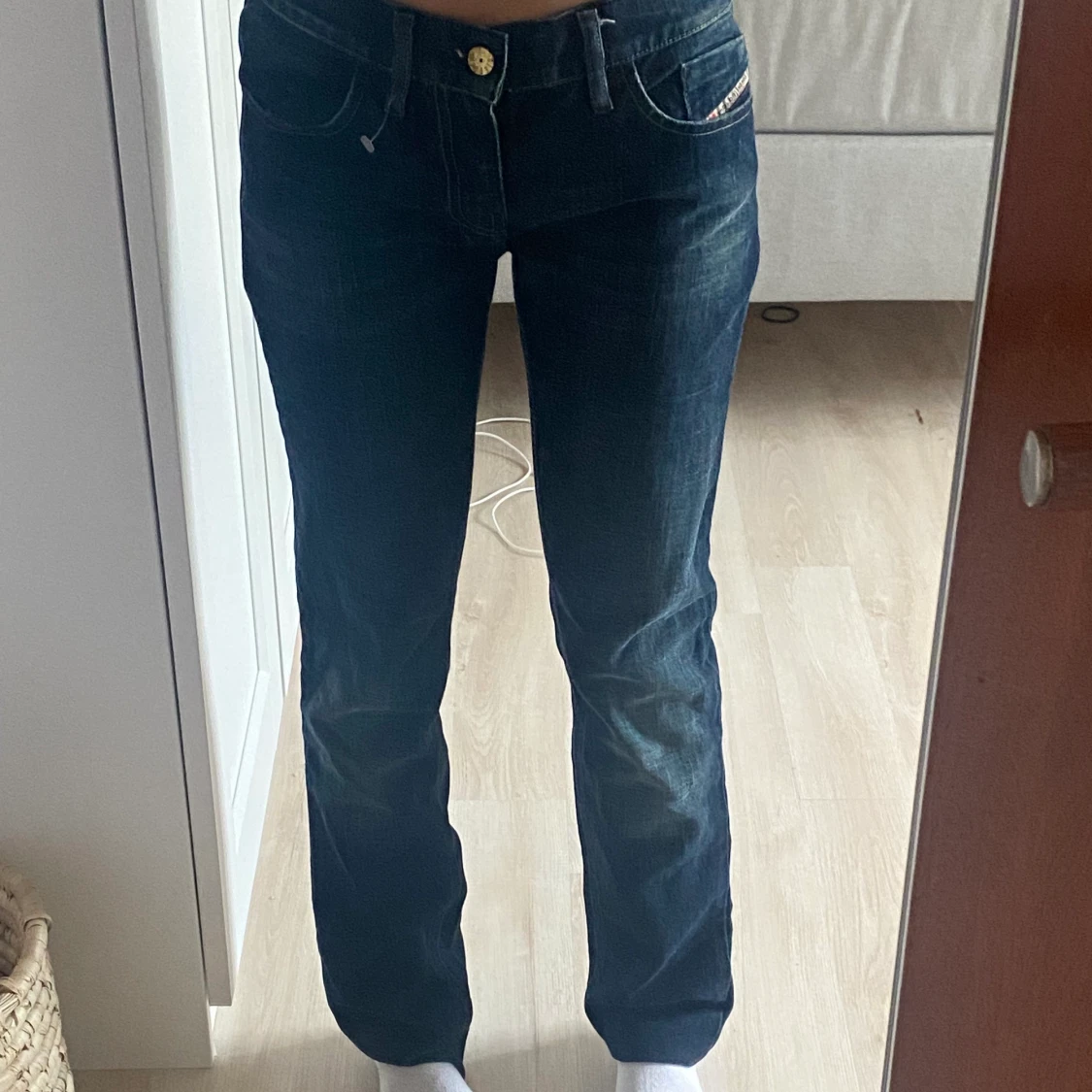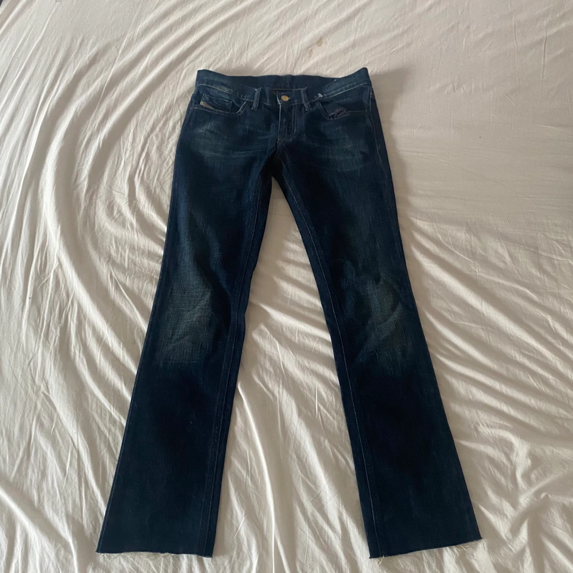 Lågmidjade jeans ifrån diesel, skulle säga att modellen är ganska rak, på bilden när de sitter på har jag dock vikt upp byxorna. Säljer pågrund av att de inte används längre. På byxorna står de W 29 och L 34, typ S.