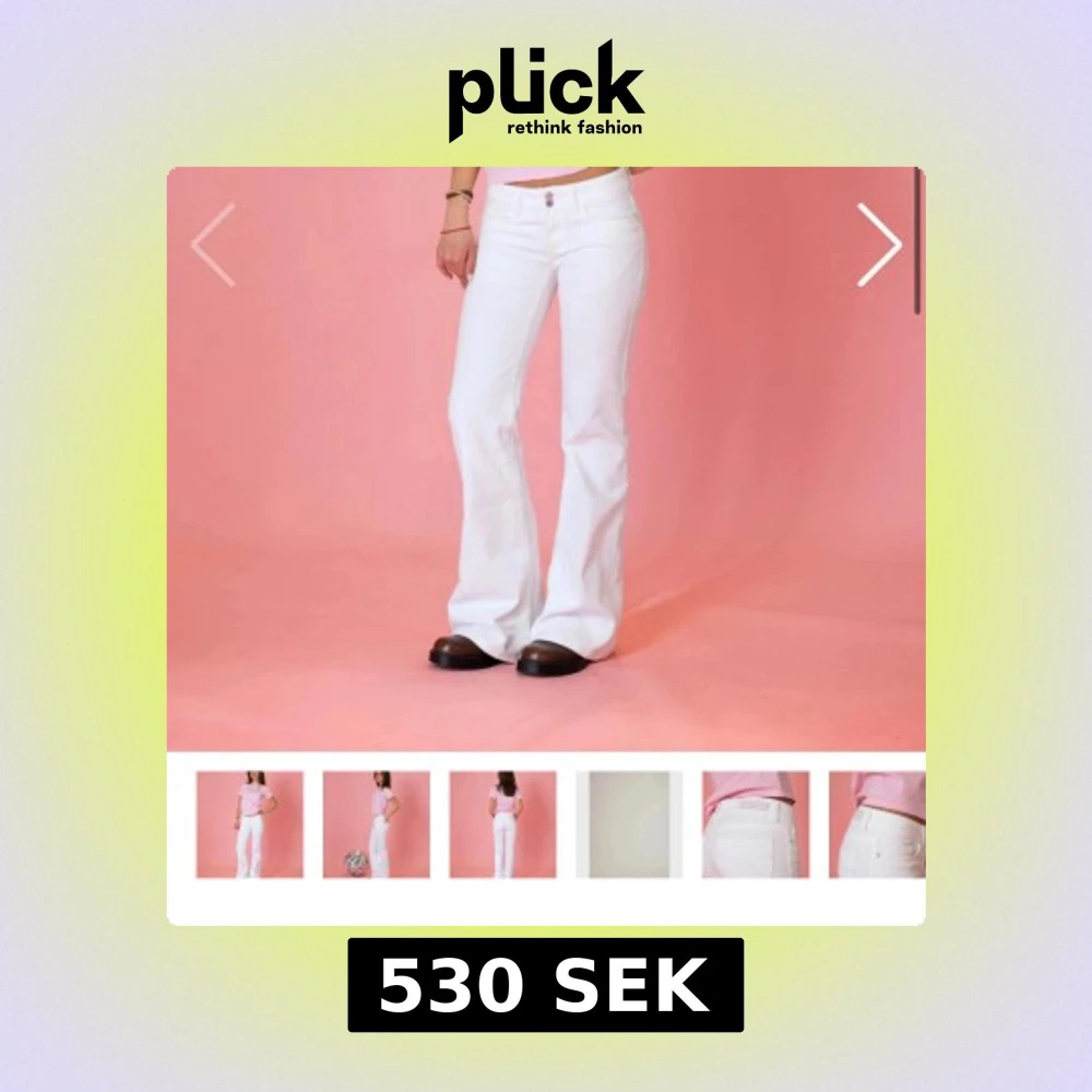 Super snygga vita lågmidjade bootcut jeans från din vintage shop. Aldrig använda och lappen är kvar. Ny pris: 710kr Innebenslängden: 82cm Midjan: 36cm