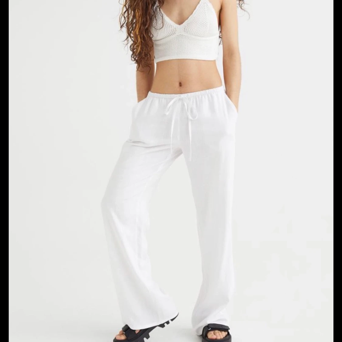 Säljer mina linnebyxor ifrån H&M. Aldrig använda. De är i storlek S och är lågmidjade. Sitter superfint och är jätte sköna. Perfekt till sommaren. Skriv privat om ni vill ha fler bilden eller har några frågor! Buda minst 10 kronor över de förra budet:) Köparen står för frakten!