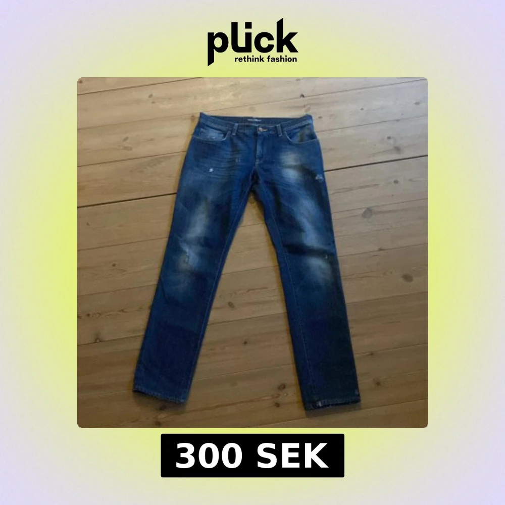 Snygga blå jeans från Dolce & Gabbana i klassisk femficksmodell. Jeansen har en lätt tvättad look med slitningar och detaljer på både fram- och baksida. Gula kontrastsömmar och metallpatch bak. Perfekta för dig som gillar italiensk design och streetstyle.