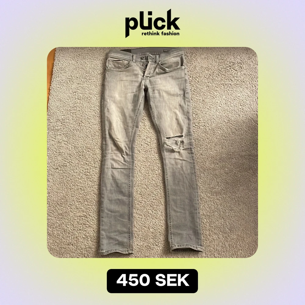 Säljer ett par grå slim jeans ifrån Dondup med modell George i storlek 28. De är i skick 9/10 och nypris är 2500-3000kr. De har en schysst reva på ena benet. Beninnerlängd 76 cm och midjemått 36 cm. Passar dig som är runt 170-172 cm lång. Hör av dig ifall du har några frågor!