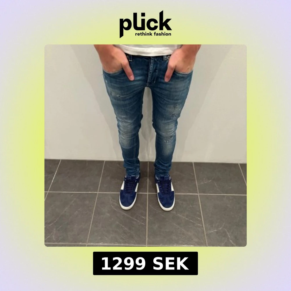 Dondup Jeans George! Trendigaste jeansen på marknaden. Storlek= 29 fits 30 Skick= 8/10 ny pris 4000 kr Säljs för= 900kr Modellen är destroyed från fabrik vilket är sjukt populärt Populär och sällsynt modell! Dondup märket på bilden ja visa sitter lite löst men inget som syns!