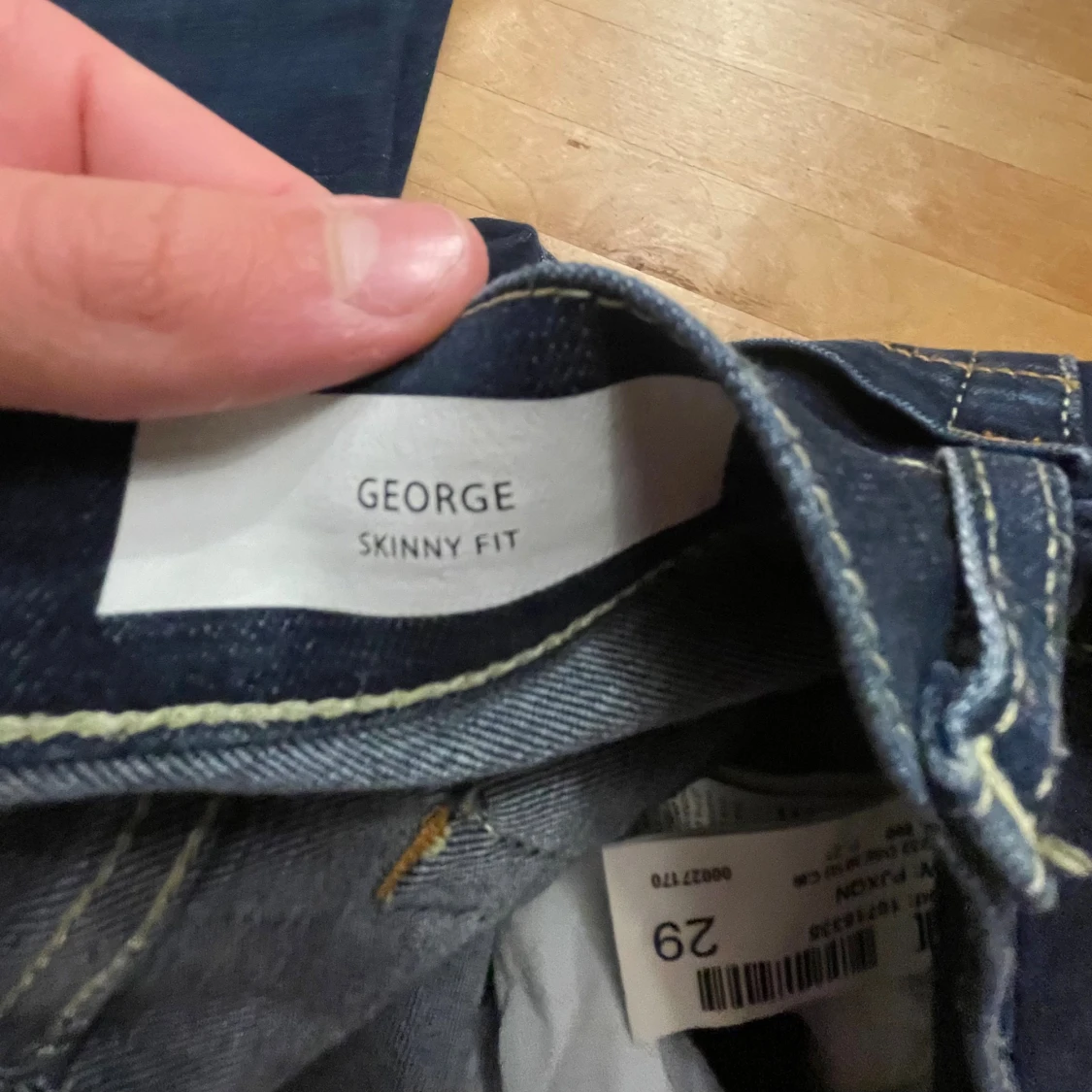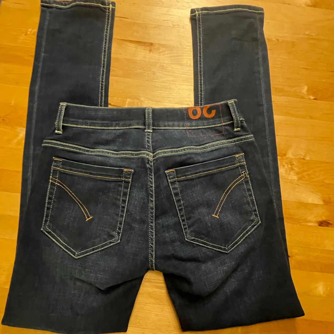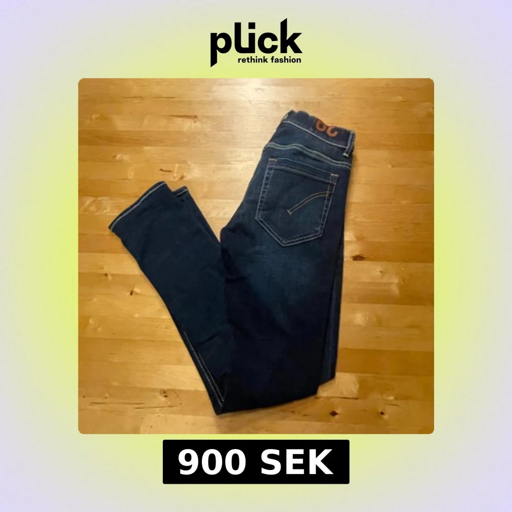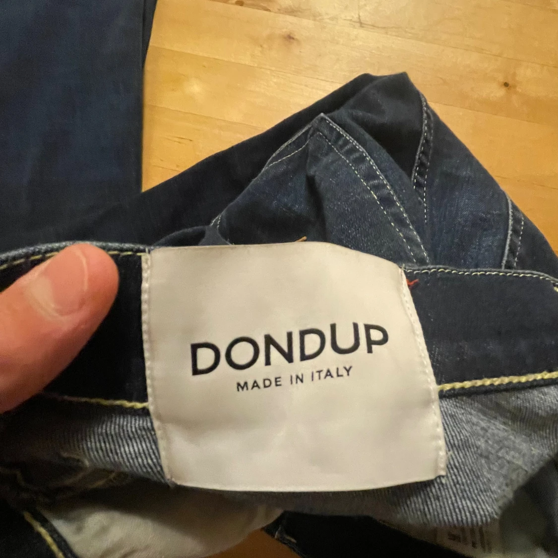 Snygga mörkblå jeans från Dondup, tillverkade i Italien. Jeansen ser helt nya ut och sitter riktigt skönt tyvär är dem lite för små för mig . Pris :699kr