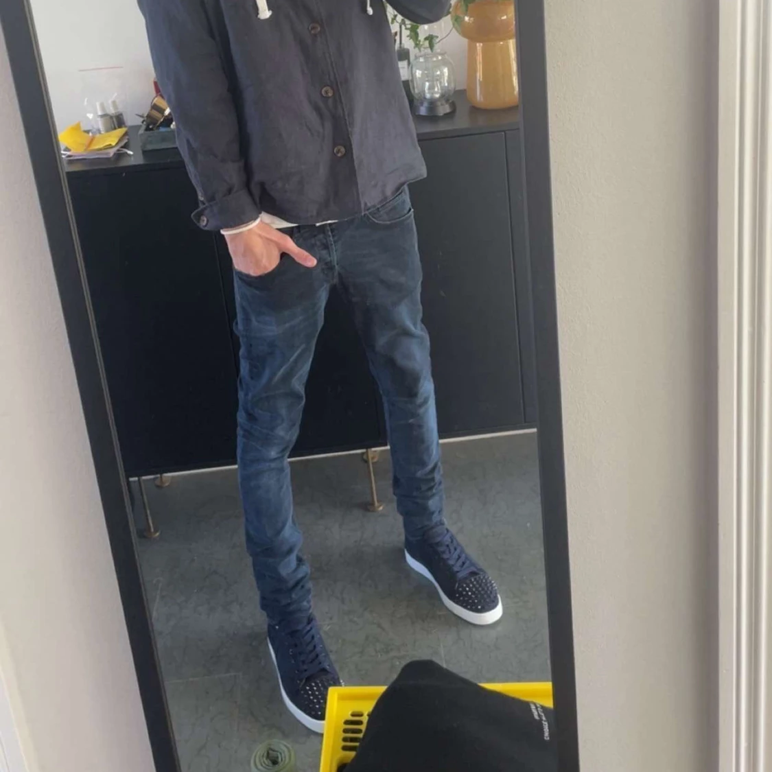 Säljer nu dessa mörkblå/svarta dondup George jeans i storlek 30, skriv för fler bilder/frågor🙌🏼