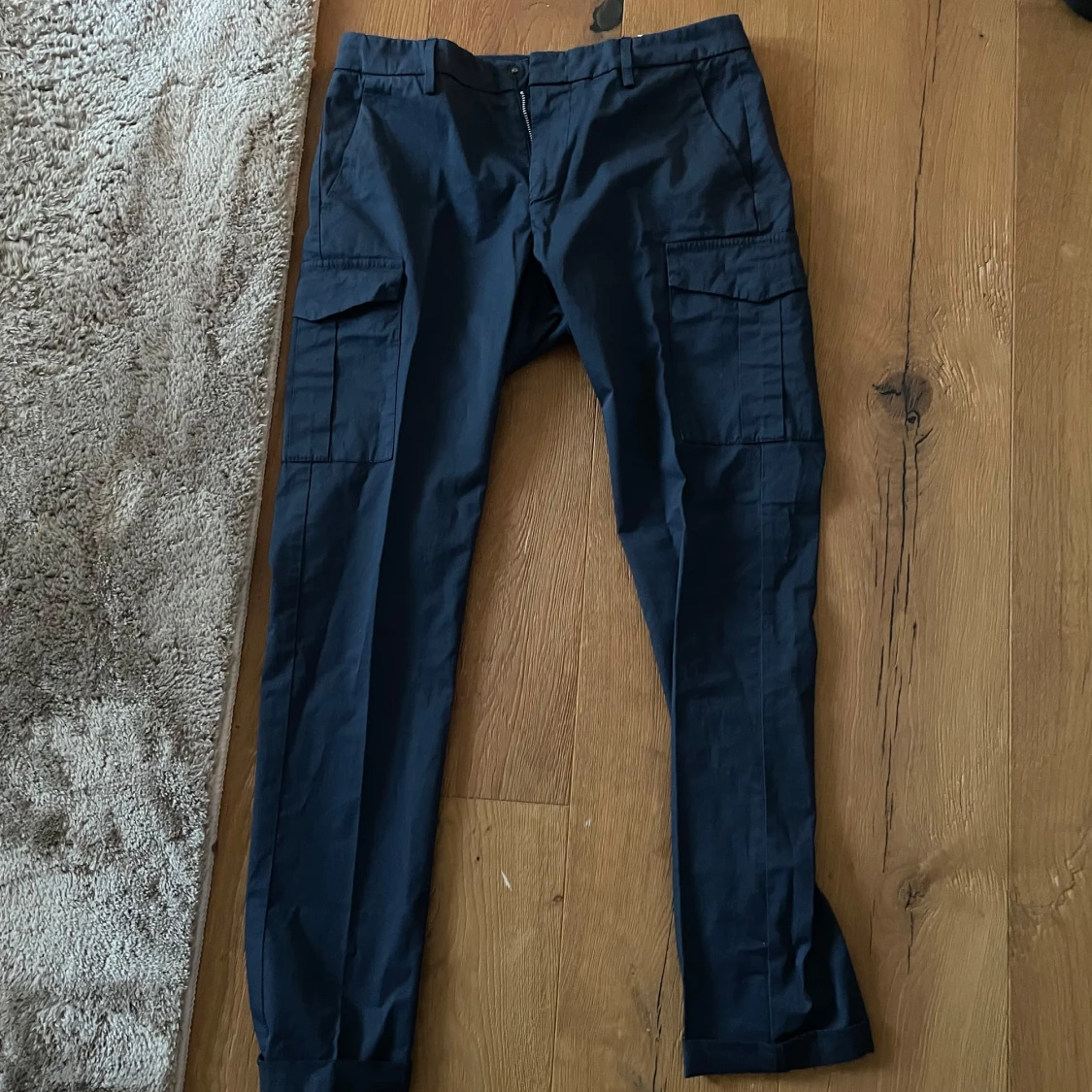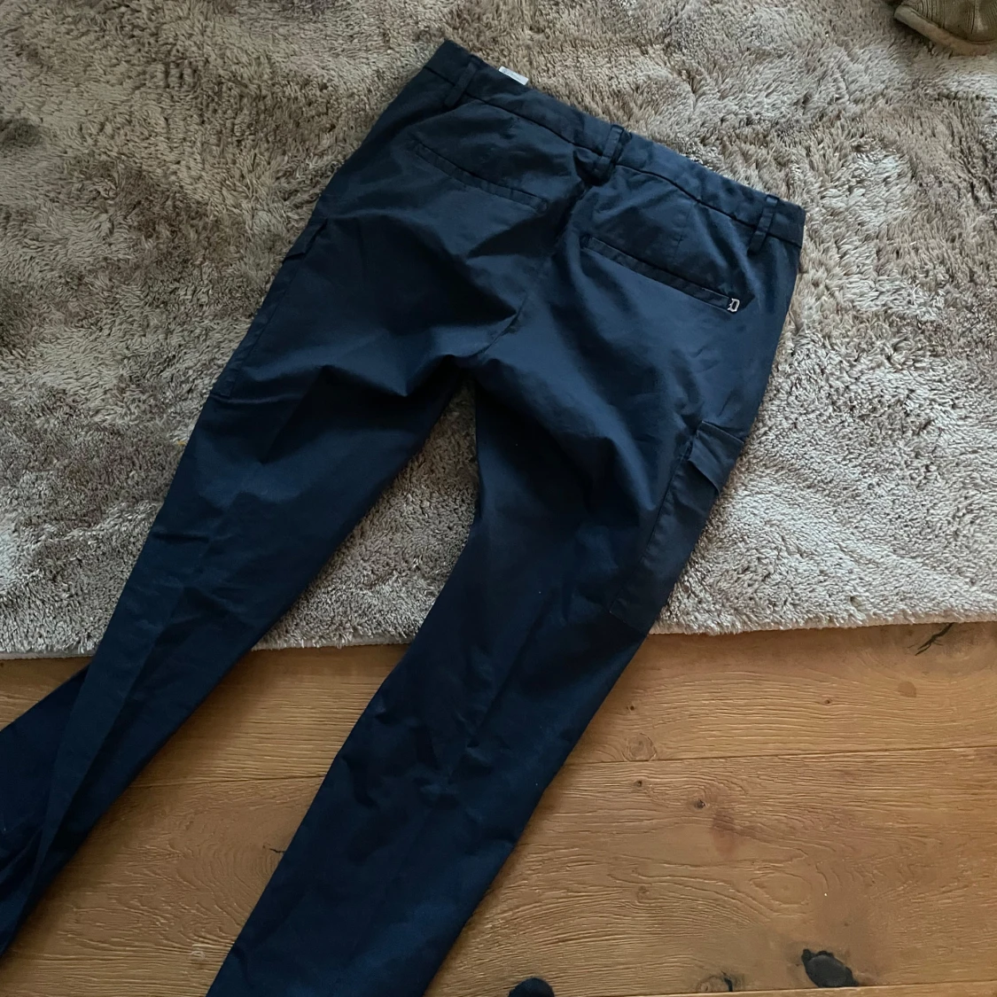 Snygga mörkblå cargobyxor från Dondup med raka ben och flera praktiska fickor på sidorna. Byxorna har klassisk cargostil och är tillverkade i ett slitstarkt bomullsmaterial. Perfekta för en avslappnad och trendig look.
