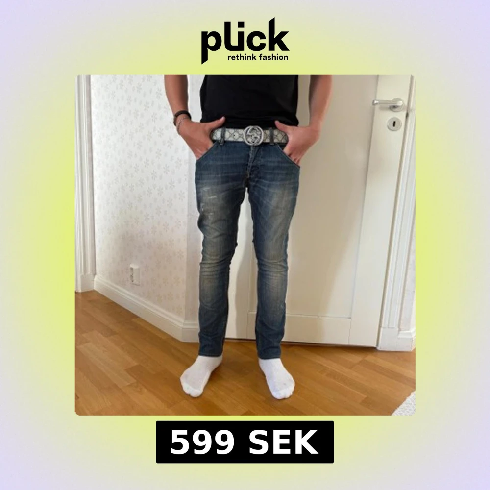 Tjenare, säljer nu mina Snygga blå Dondup George jeans som har blivit försmå. De är Slim fit och klassisk femficksdesign. Jeansen har slitna detaljer och metall-D på bakfickan. Perfekta för dig som gillar en avslappnad stil. Köpta för 749kr mitt pris 439kr. Hör av er vid minsta fundering👌🏻👍