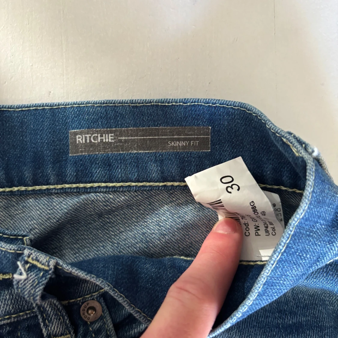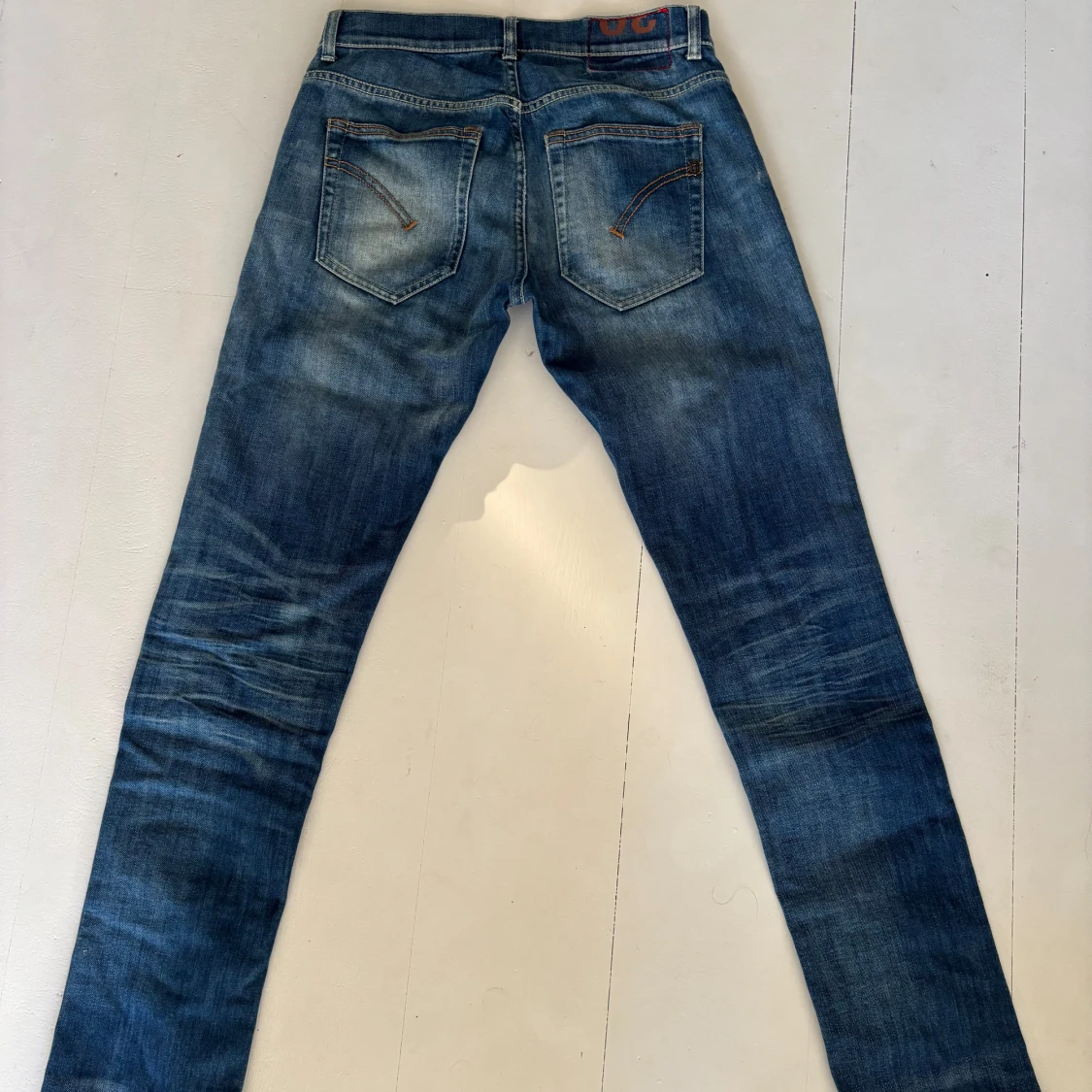 Snygga blå jeans från Dondup i skinny fit-modell. Jeansen har klassisk femficksdesign, slitningar och tvättade detaljer för en cool look. Tillverkade i jeansmaterial med smal passform som sitter tajt längs benen.