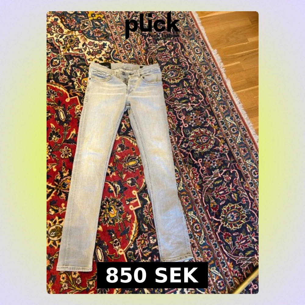 Säljer ett par ljusgrå skinny jeans från Dondup, tillverkade i Italien. Jeansen har klassisk femficksdesign, knappgylf och smal passform. Perfekta för dig som gillar en clean och modern look.