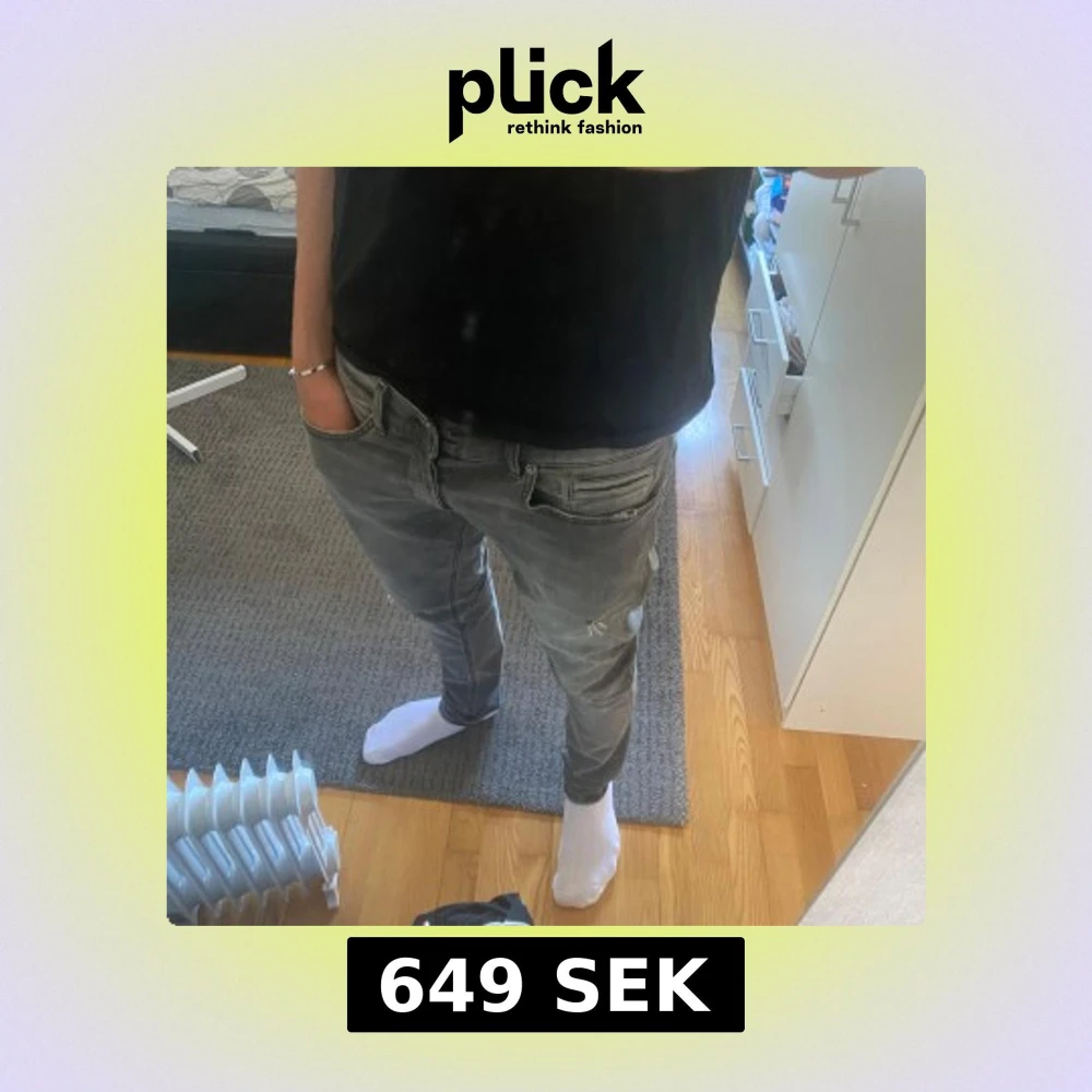 Säljer ett par dondup george i grå färg med två diskreta slitningar på varsitt ben. Dem är i väldigt bra skick förutom ett litet hål i bakfickan på bild 2, men det är inget som syns igenom på något sätt.