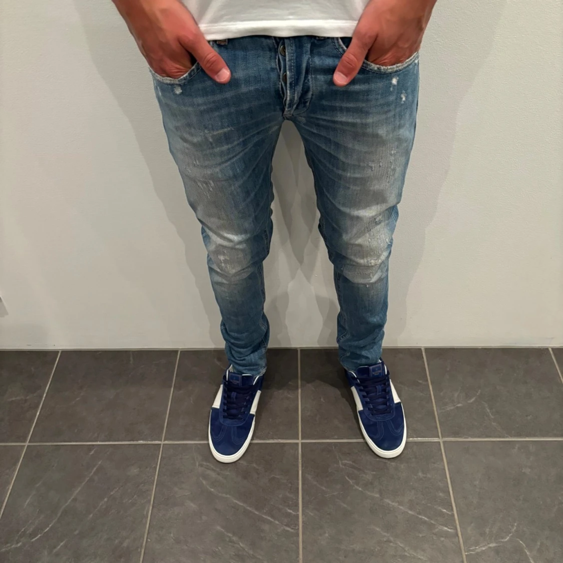 Trendigaste jeansen på marknaden! Hej, Säljer nu dessa sjukt snygga dondup jeans som är perfekt till våren och sommaren Storlek= 32 Skick= 9,5/10 Ny pris= 4000 kr Säljs för= 1199 kr Modellen är destroyed från fabrik vilket är sjukt populärt