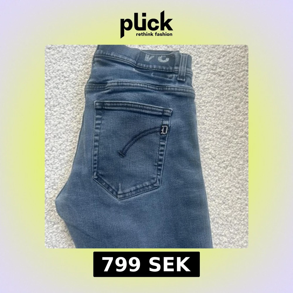 Snygga jeans från Dondup i en mörkblå/gråaktig tvätt med diskreta slitningar. Jeansen kostar 3500kr nypris. I princip helt nya, modell ritchie
