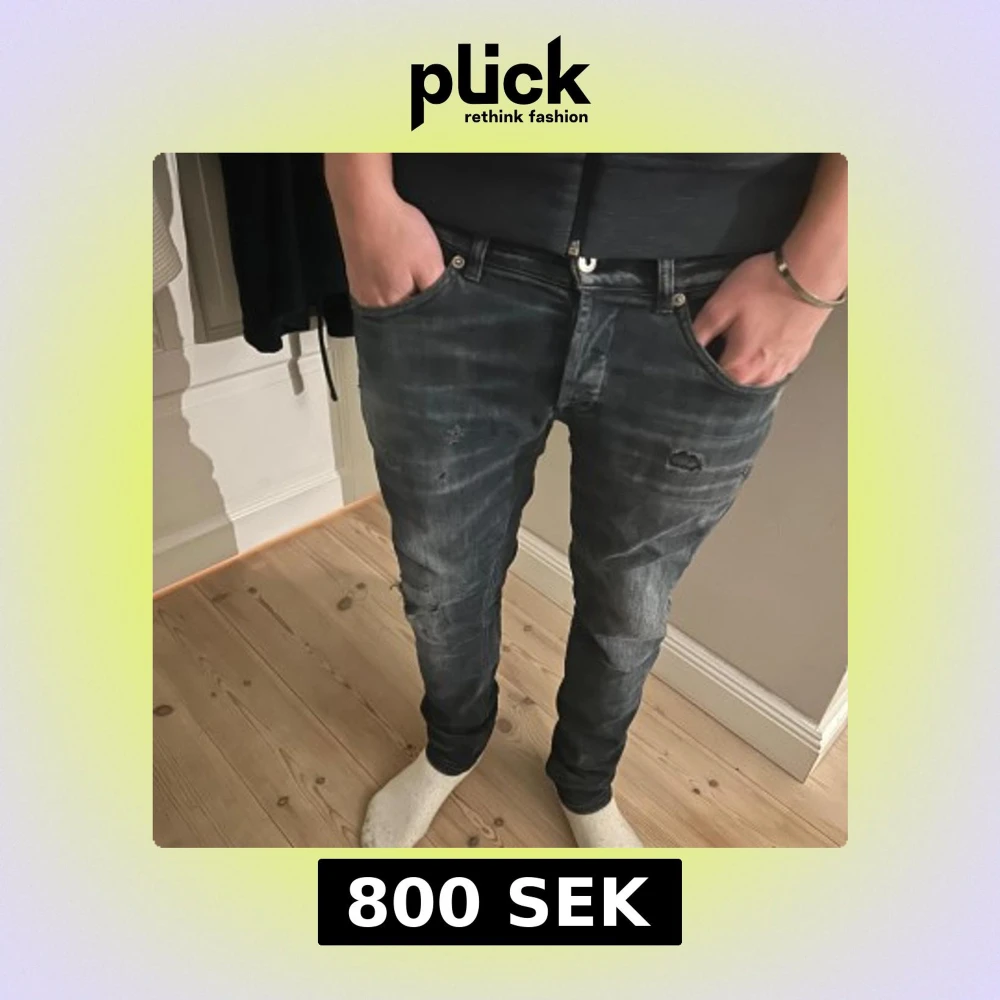 Snygga dondup jeans, modellen är 185 o väger 73kg. Hål i ljumsken