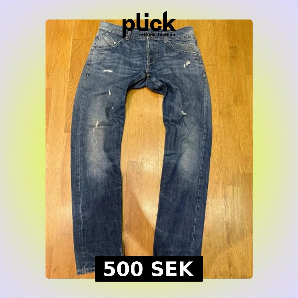 | Säljer ett par snygga Dundup Jeans! | Bra skick | Med snygga slitningar! | Längd 106 cm | Midjemått 43 cm | Ny pris <3000 | Mitt pris 500 | Vid fler funderingar är det bara att skriva☺️|