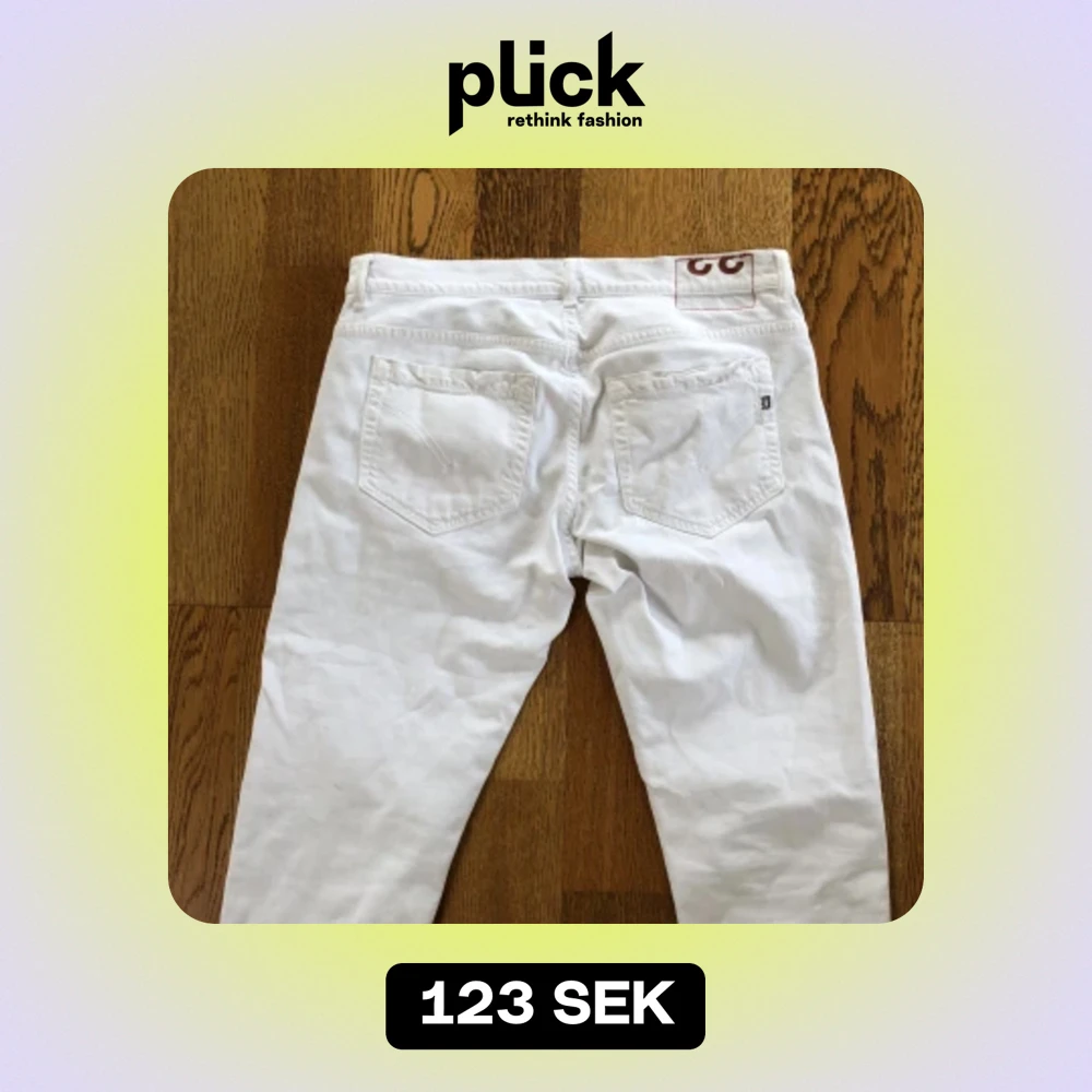 Dondup george jeans vita. Jätte snygga på sommaren och väldigt bra skick. Storlek 33 men passar bättre som 32. Sugen på byte i samma modell men ett par som passar 33/34. Tar gärna emot rimliga bud.