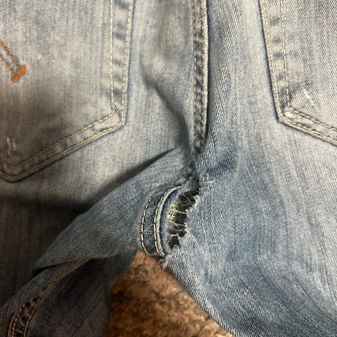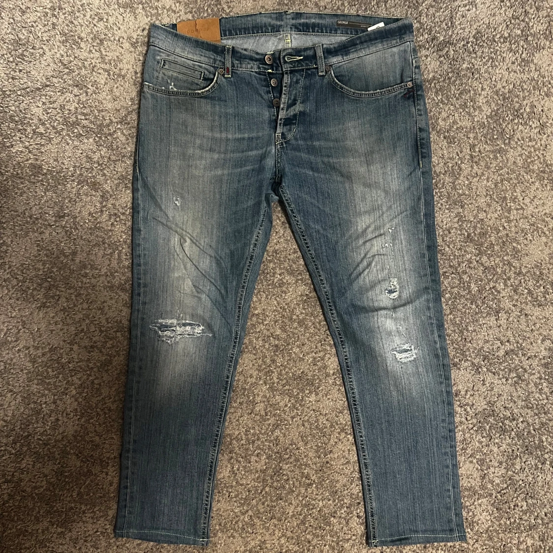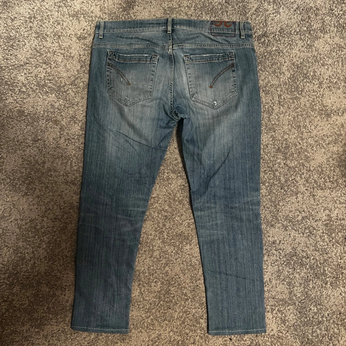 Tjena, säljer nu mina fina dondup jeans. Snygga med slitningar, med endast en liten flaw (bild 4) som enkelt går att sy igen. Storlek 36, passar 33-34W. Nypris 3500k. Hör gärna av dig vid funderingar 😊