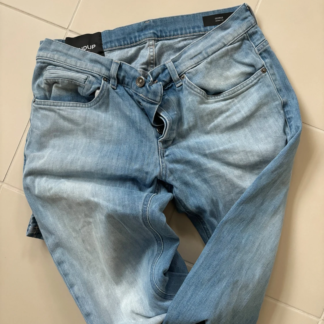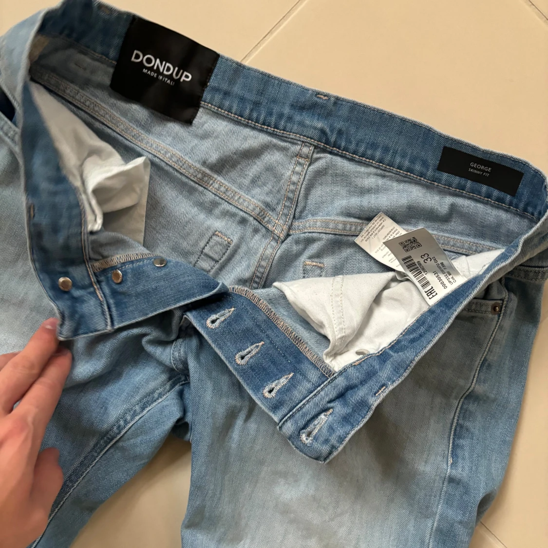 Väldigt snygga ljusa blå Dondup jeans i w33 säljes (midjemått på 86 cm). Toppen skick utan hål eller fläckar! Nyaste modellen av den populäraste modellen George! Tveka inte vid minsta fråga eller fundering och pris ej hugget i sten😃