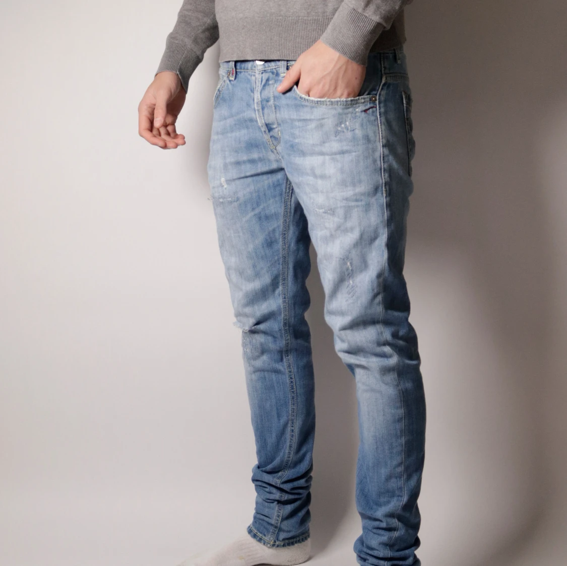Dondup George // Slim Fit // Storlek: 33 Mått: Midja: 39 cm, Innerben: 80 cm, Benlängd: 106 cm Nypris: 3399:- Vårt pris: 599:- Hojta gärna vid frågor – vi svarar dig alltid snabbt med ett trevligt bemötande. Allt gott, /Team Trovata