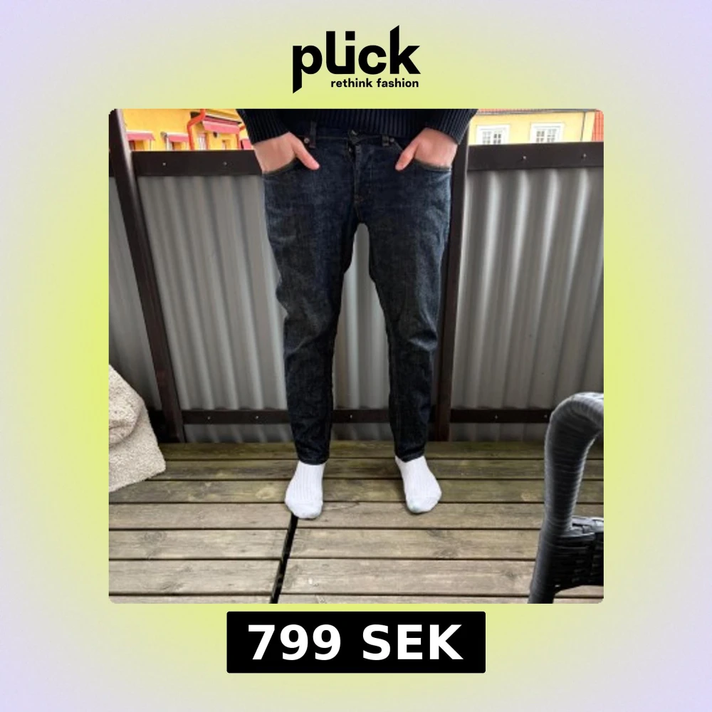 Säljer ett par mörkblå selvage dondup George! Dessa jeansen är tvär feta och blir bara fetare desto mer du har på de. Skicket är 8/10. Modellen på bilden är 178 cm lång. Priset kan diskuteras vid snabb affär!🍾