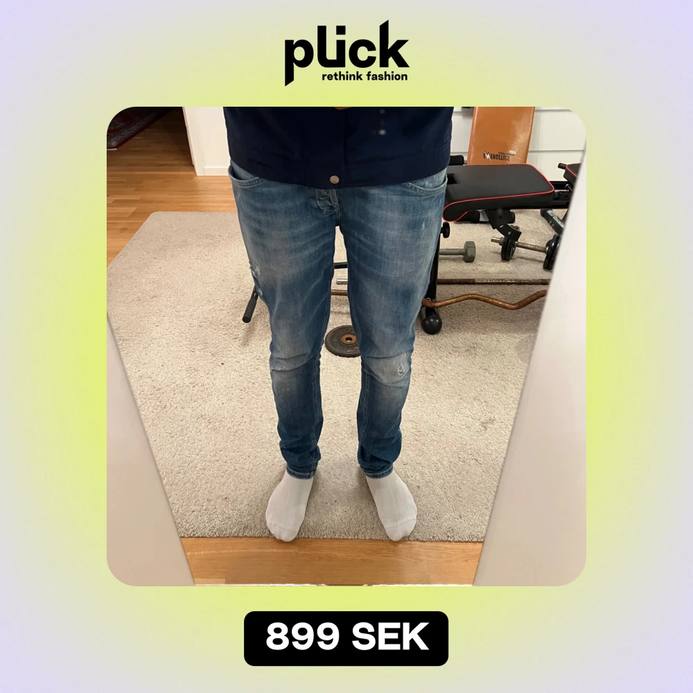 Tja! 🌟Säljer Dondup george i gott skick (8/10). Skön fade samt snygga slitningar på jeansen. Storleken är 32/32 så passar folk runt 175-180cm🚀. Fraktar samma dag som den blir såld eller en dag efter.💪🏽💪🏽