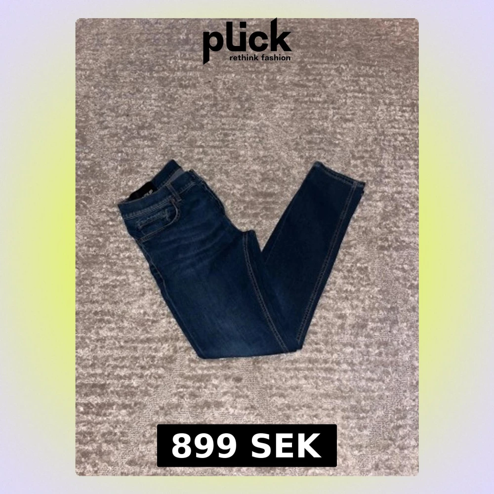 Hej jag säljer ett par Dondup George i nyaste modellen. Jeansen i riktigt snygg marinblå färg perfekt för dig som vill ha ett par kvalitetsjeans med grym passform. Nypris ≈4000kr, mitt pris 899kr. Skick: 9/10 Storlek: W34 Midja: 42cm Lår: 24cm Ytterlängd: 105cm Innerlängd: 80cm Skriv gärna om du vill ha fler bilder eller har frågor!